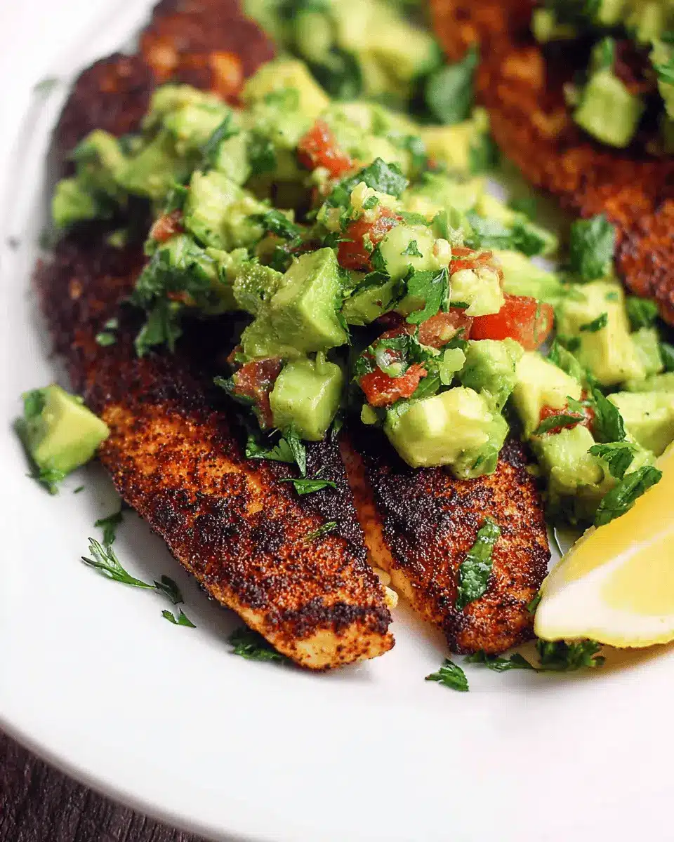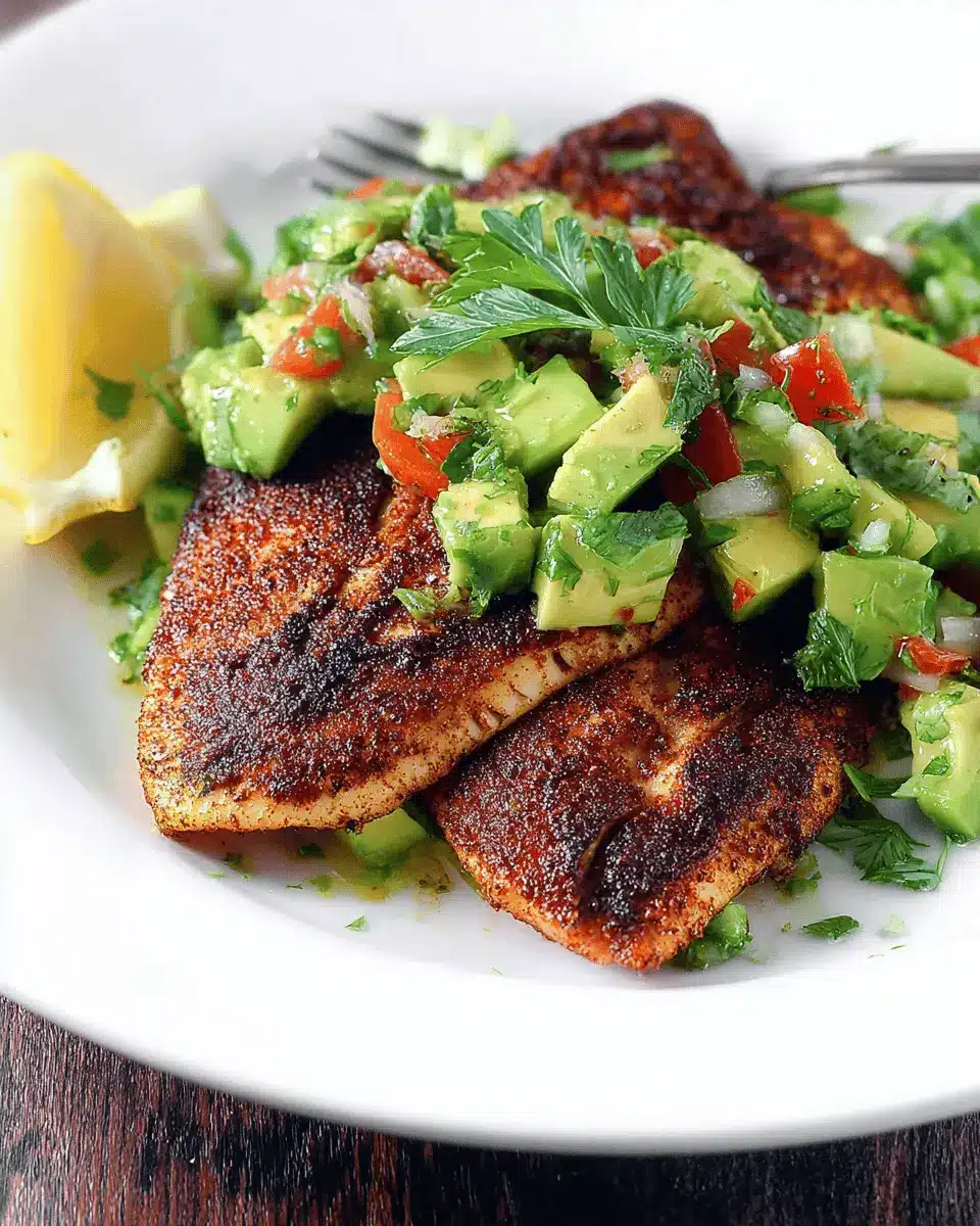 10-Minute Blackened Tilapia with Avocado Cucumber Salsa