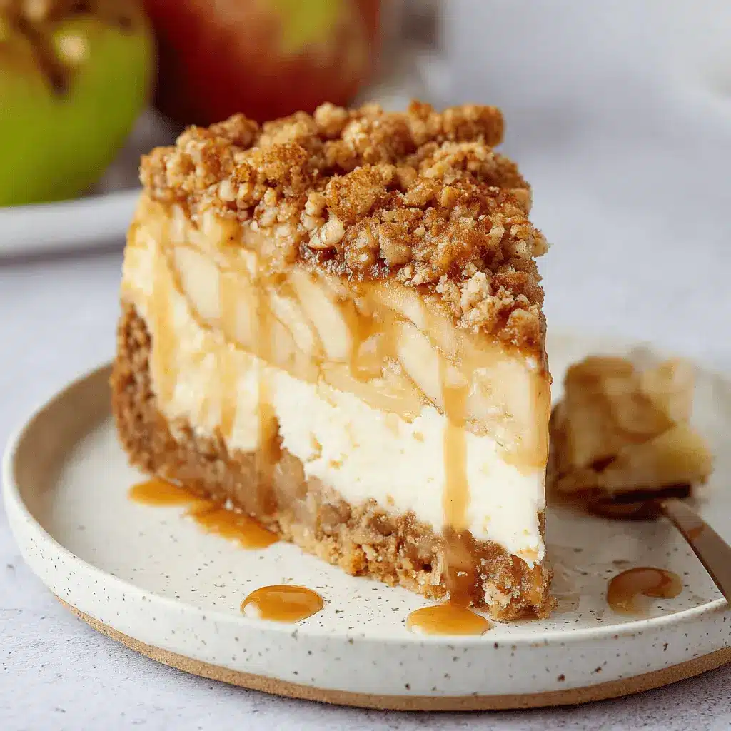 Make your Apple Crumble Cheesecake shine by garnishing it with fresh apple slices and a light dusting of powdered sugar. Place it on a decorative cake stand for an elegant look. For extra flair, serve each slice with a small bowl of apple caramel on the side. This not only enhances visual appeal but also allows your guests to customize each bite!