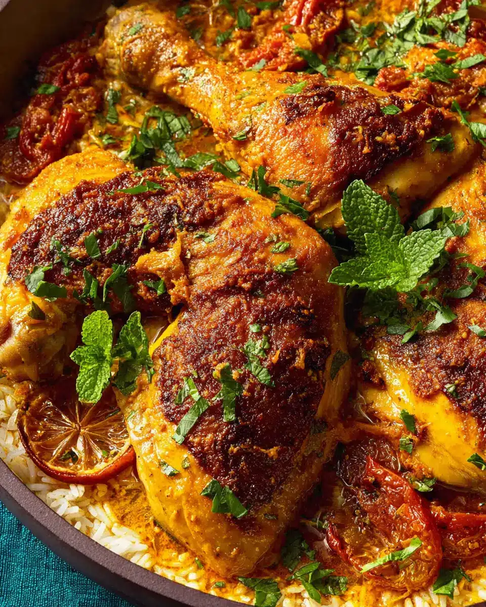 Once out of the oven, finish off by sprinkling over some fresh mint and parsley for that final touch of color and flavor. Serve hot, and enjoy the comforting and vibrant tastes of your Apricot Chicken, Persian-Style.
