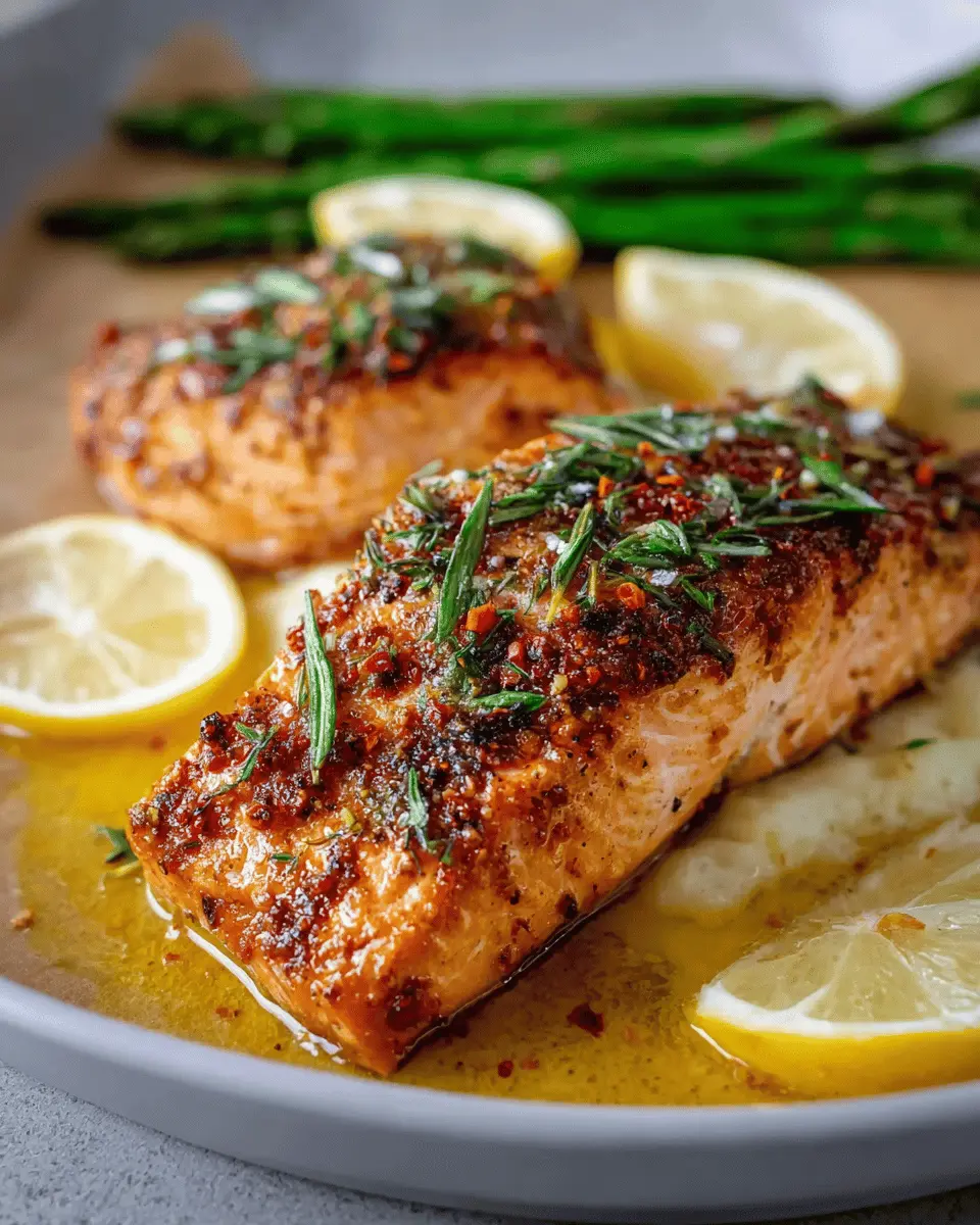 For those who love a kick, add 1 teaspoon of cayenne pepper or increase the chili flakes in the marinade. This fiery twist perfectly balances the buttery richness of the salmon. Pair with a side of spicy quinoa salad to complement the heat!