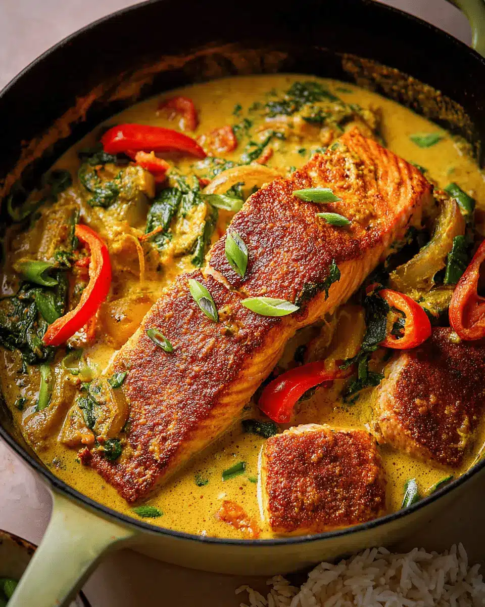 Step-by-step preparation for Caribbean-Style Coconut Curry Salmon