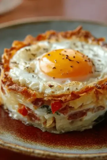 Baked Eggs Napoleon: Indulgent Twist with Turkey Bacon and Chicken Ham