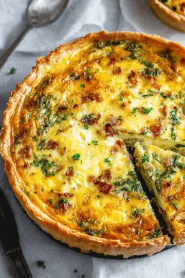 Easy Breakfast Quiche with Turkey Bacon and Chicken Ham Delight