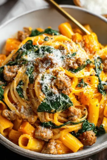 Creamy Butternut Squash Pasta: Indulgent Dish with Sausage and Spinach
