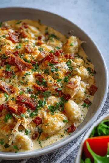 Creamy Crack Chicken Gnocchi with Turkey Bacon and Chicken Ham Delight