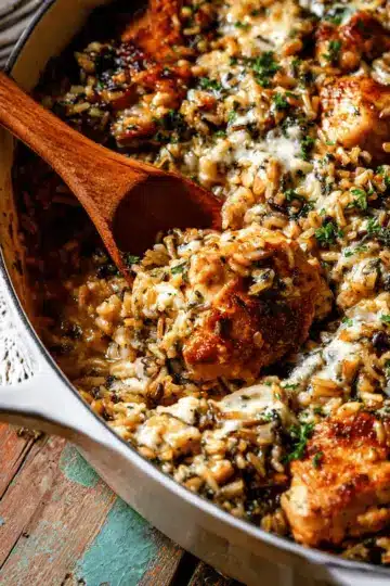 Creamy Garlic Chicken Wild Rice Casserole with Turkey Bacon Delight