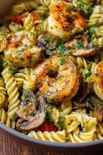 Pesto Shrimp Mushroom Pasta