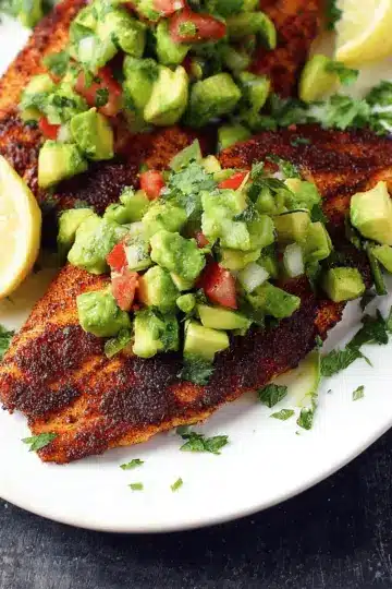 10-Minute Blackened Tilapia with Avocado Cucumber Salsa