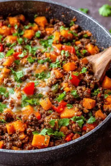 Southwest Ground Beef and Sweet Potato Skillet