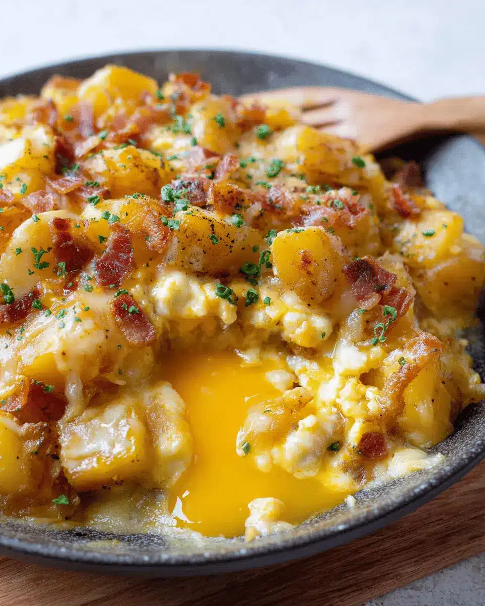 In summary, this cheesy potato egg scramble is a delightful choice for any meal of the day. Quick and easy to prepare, it's packed with flavor and comforting ingredients. Don’t hesitate to customize it with your favorite veggies or proteins—every variation will bring delightful surprises to your breakfast table!