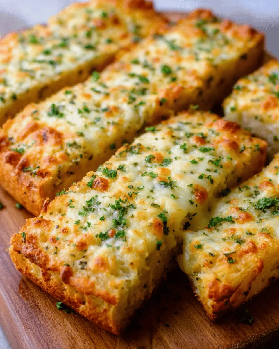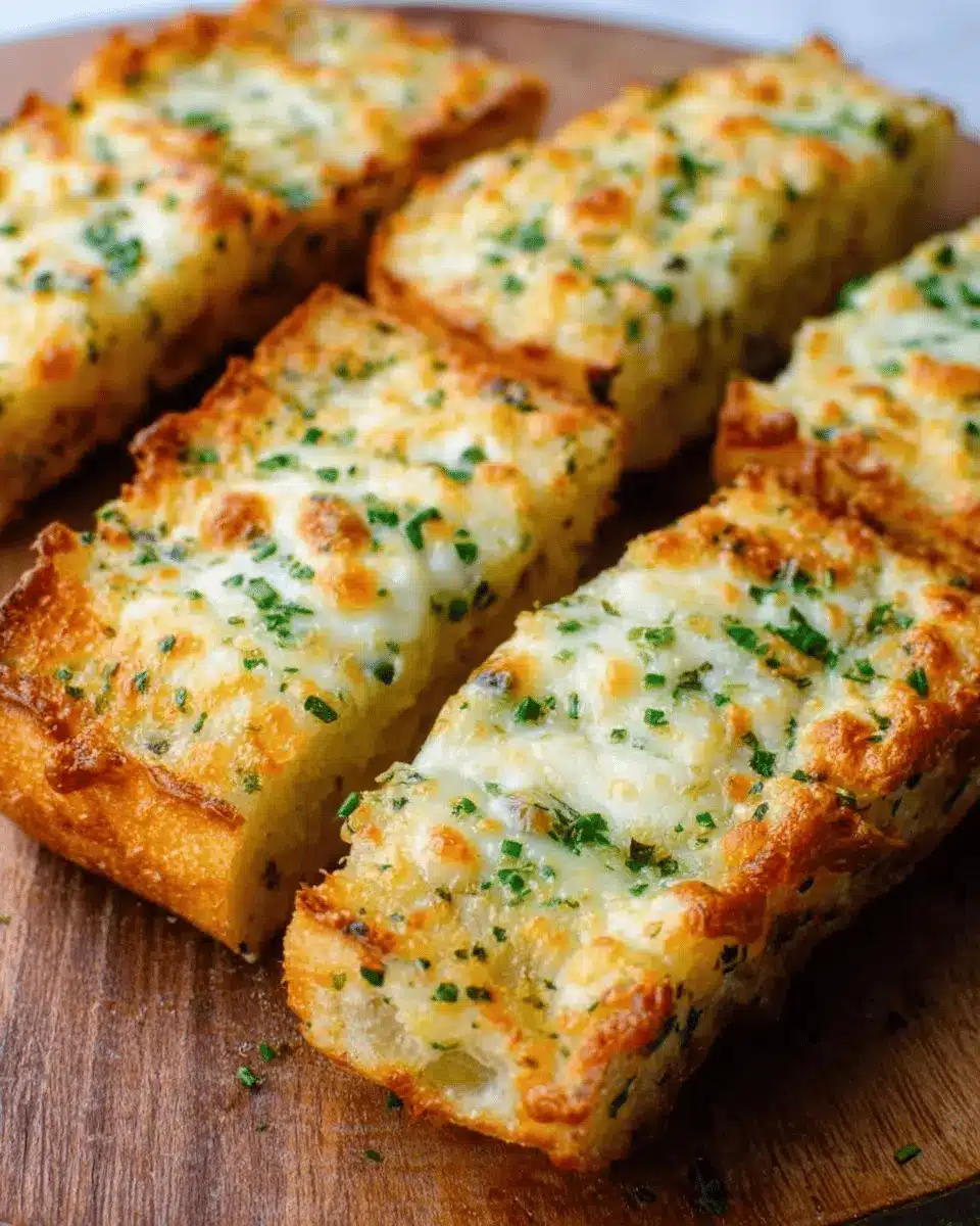 When hosting friends or family, take your cheesy garlic bread to the next level. Cut it into bite-sized pieces for easy sharing, or even transform it into a cheesy appetizer by presenting it on a rustic cutting board. Consider serving it with dips like marinara or pesto to elevate the experience, encouraging your guests to indulge. This versatile dish truly shines in gathering settings, letting everyone savor that gooey, cheesy goodness together!
