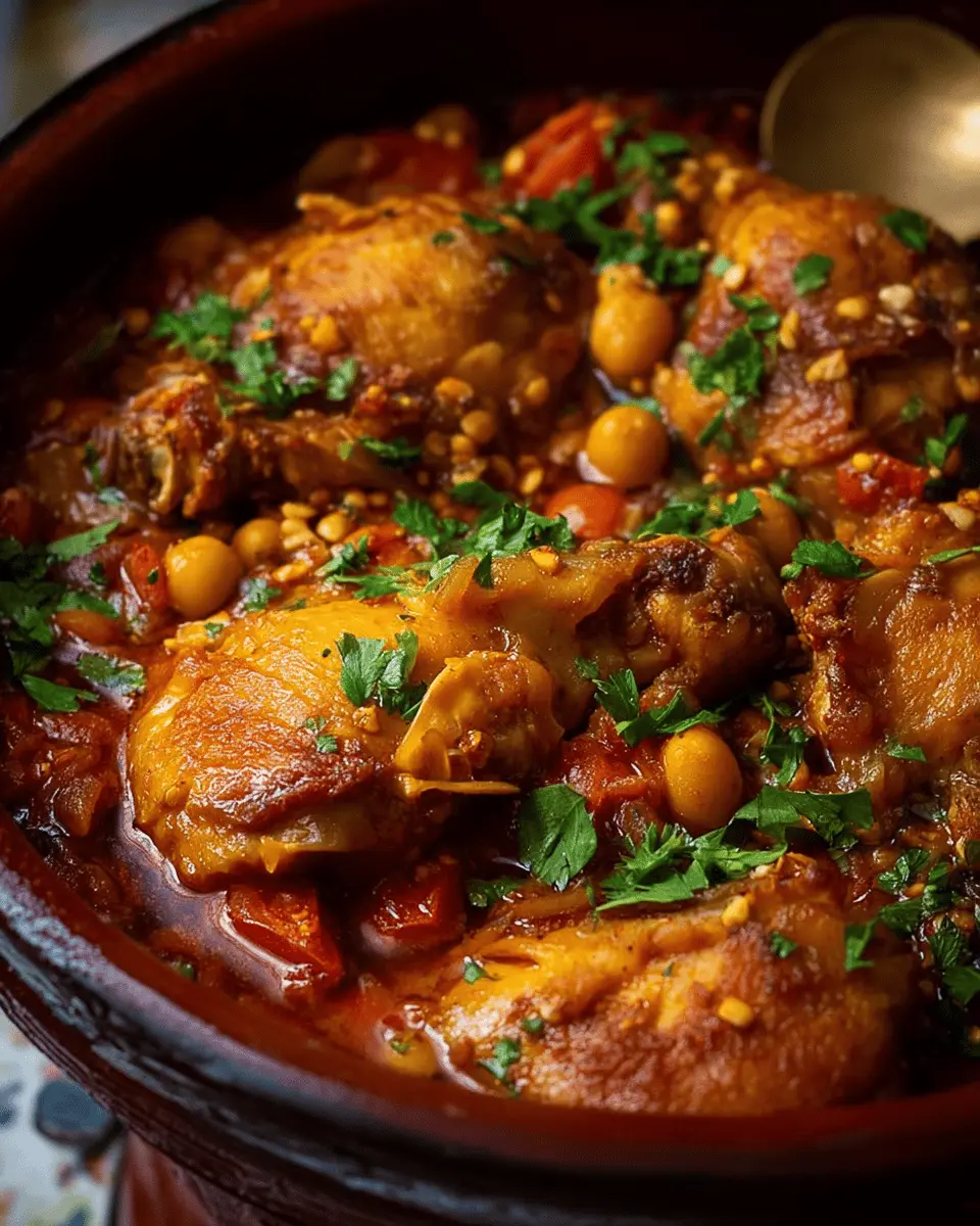 Enhance your presentation by garnishing your Chicken Tagine with freshly chopped coriander. You can also sprinkle lightly toasted slivered almonds or even pomegranate seeds for a pop of color and crunch. For an authentic touch, consider serving alongside warm pita or flatbread for dipping into the delicious sauce. Enjoy your meal, and don’t forget to savor every bite!