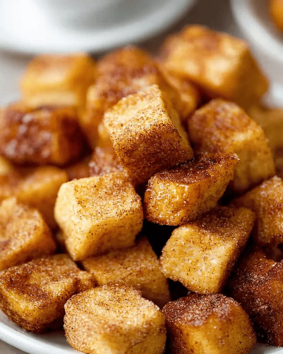 Once your bread cubes are nicely browned, remove them from the pan and directly into the cinnamon-sugar mix. Toss them gently to coat, then transfer to a plate. Repeat with the remaining cubes until all are cooked and sugared. Finally, serve your Cinnamon French Toast Bites immediately with a side of warm maple syrup for dipping. Your weekend brunch cravings are officially satisfied!