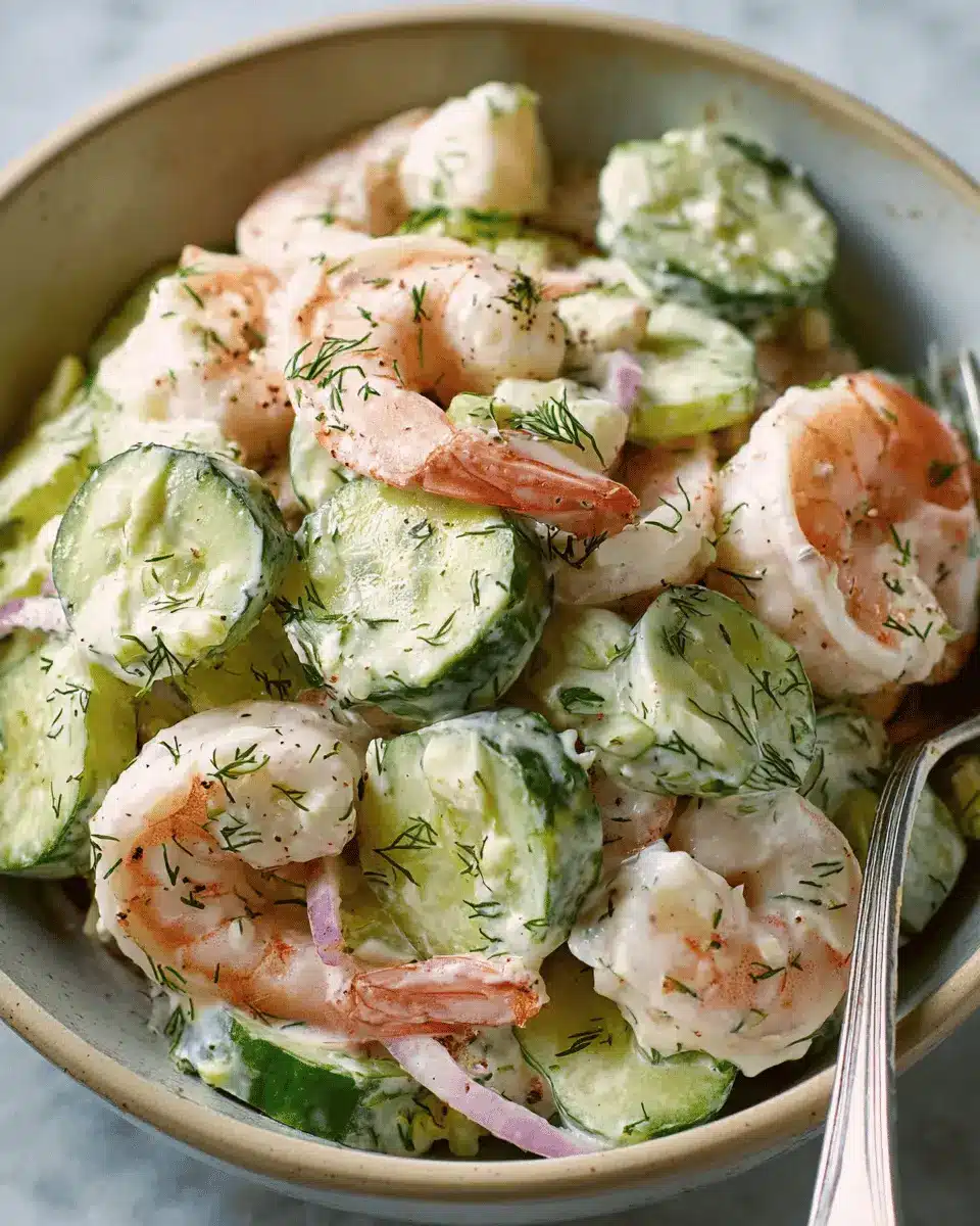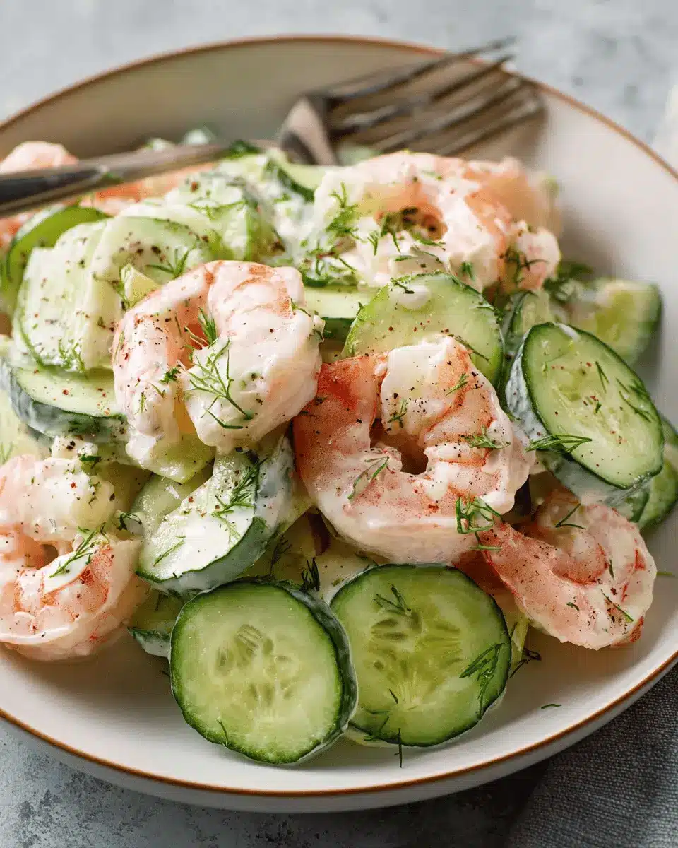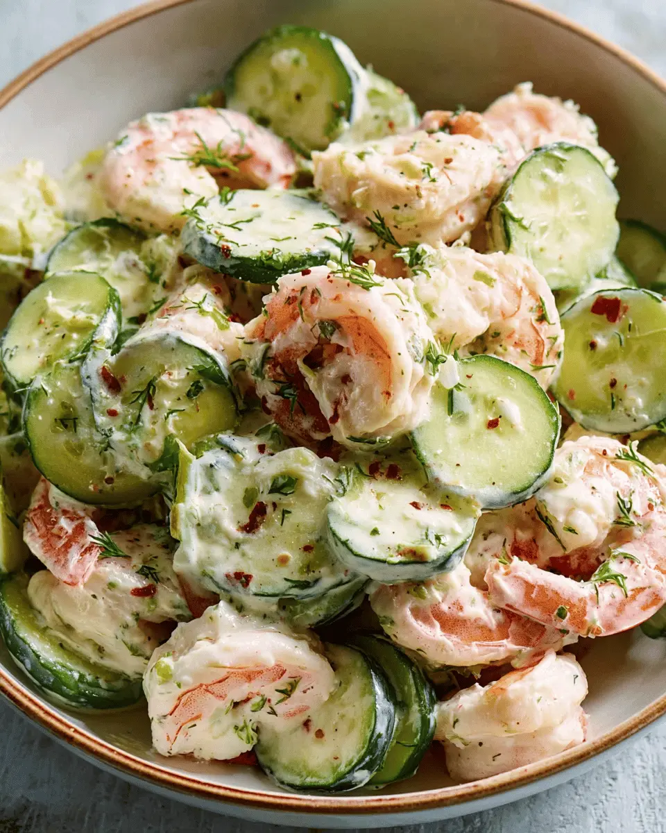 Preparing a creamy cucumber shrimp salad in your kitchen is a delightful way to savor fresh ingredients. Not only is it quick and simple, but it’s also a nutritious option packed with protein and flavor. Trust me—you’ll love how this dish brings a refreshing twist to your mealtime routine!
