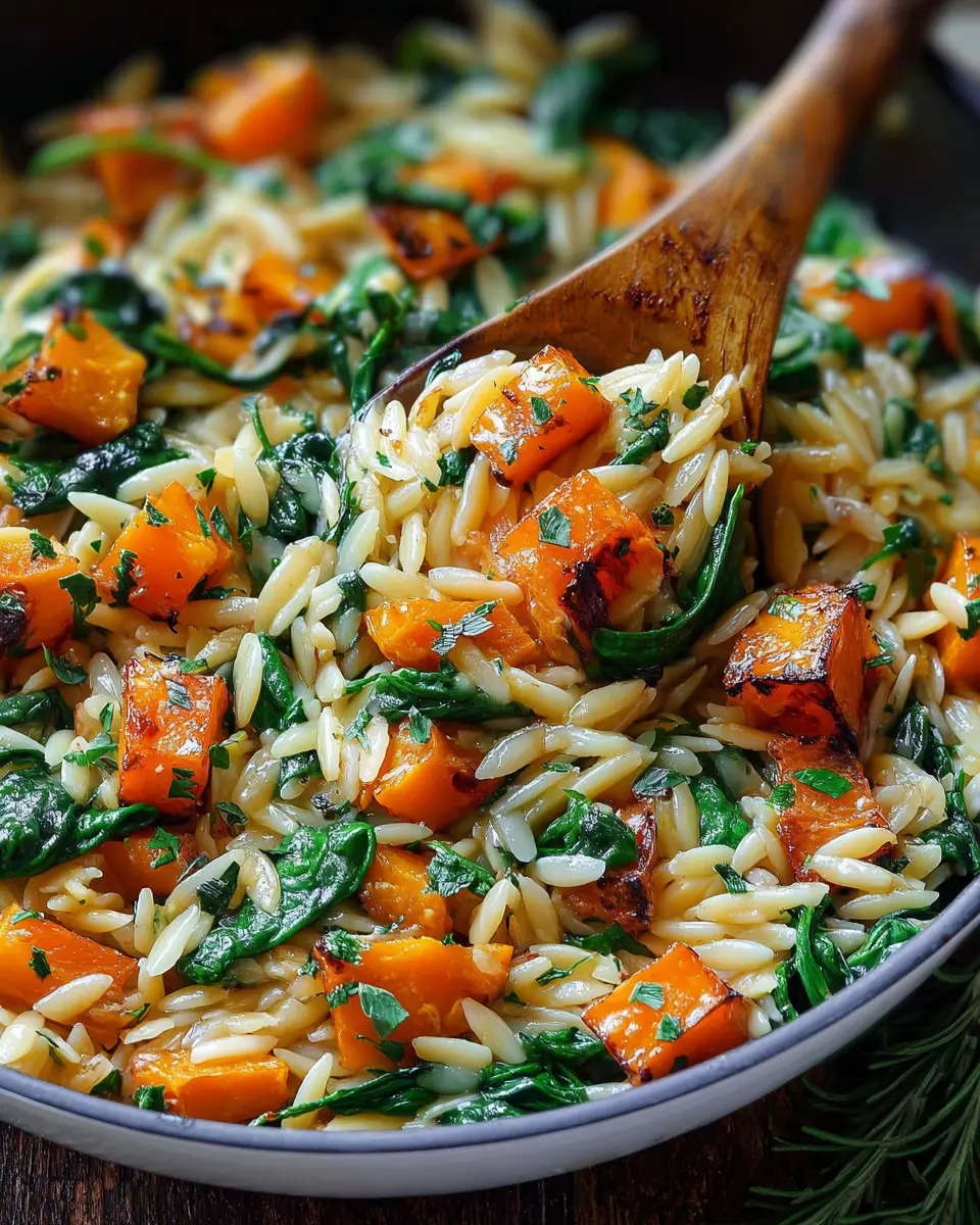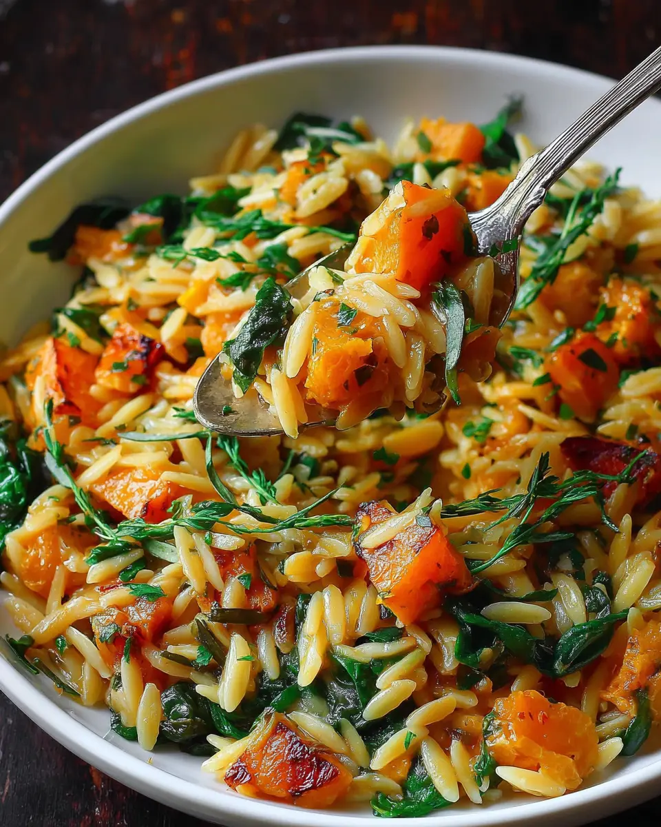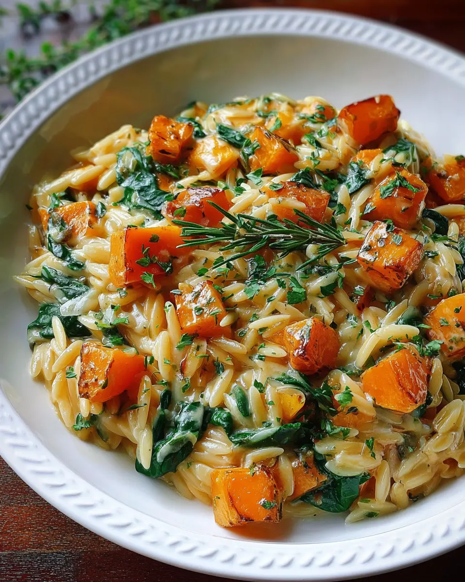Creamy Orzo Pasta with Roasted Butternut Squash and Spinach