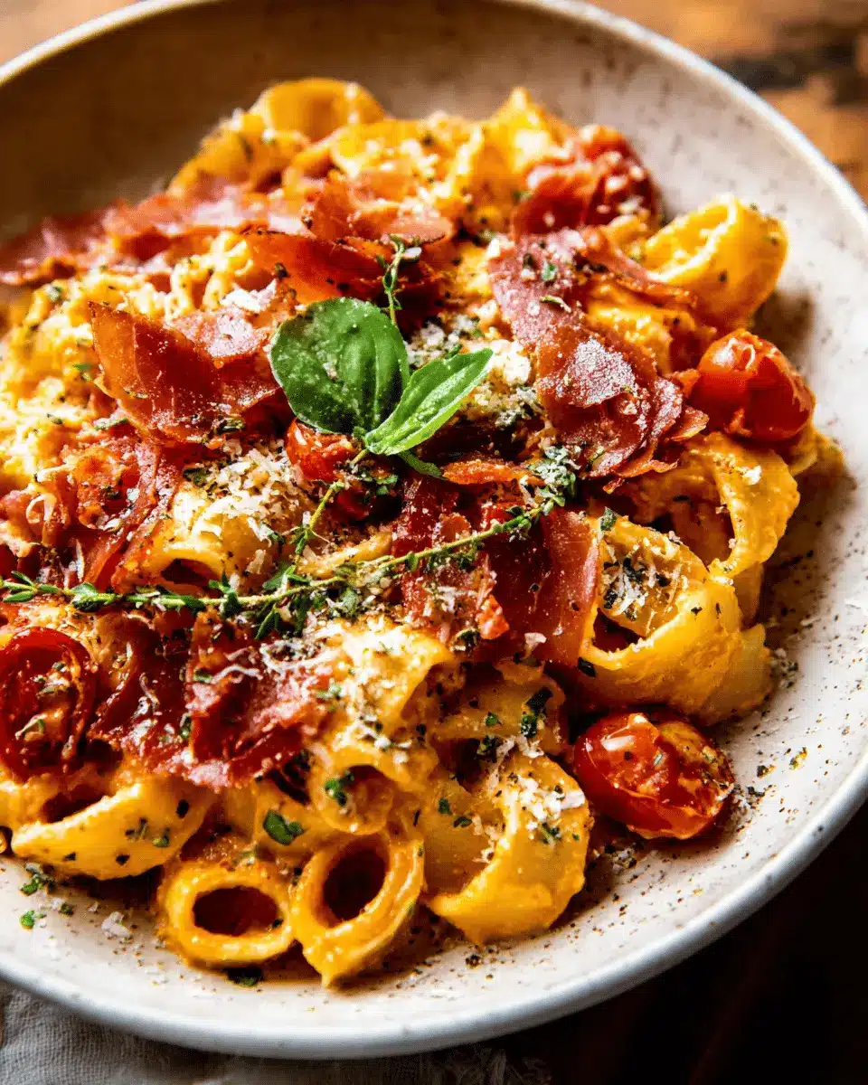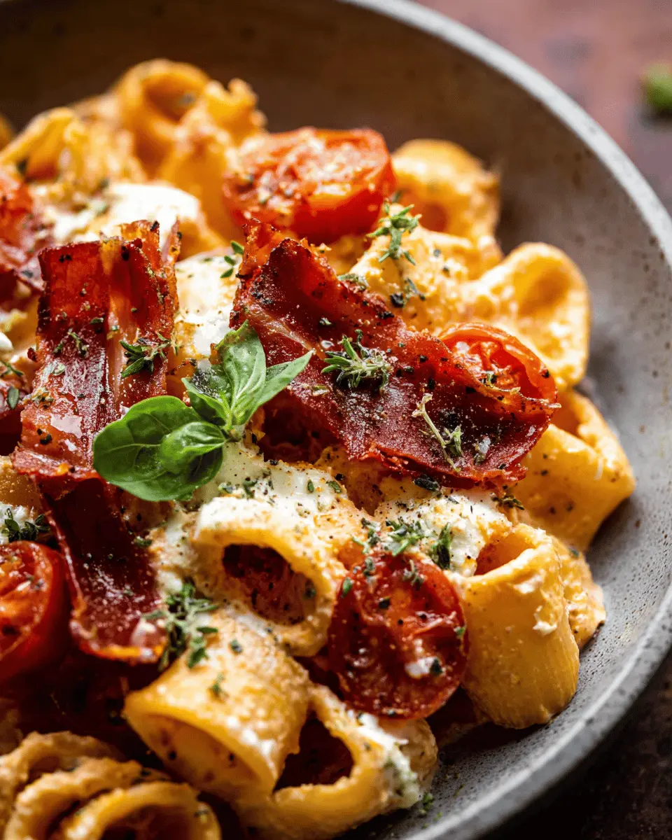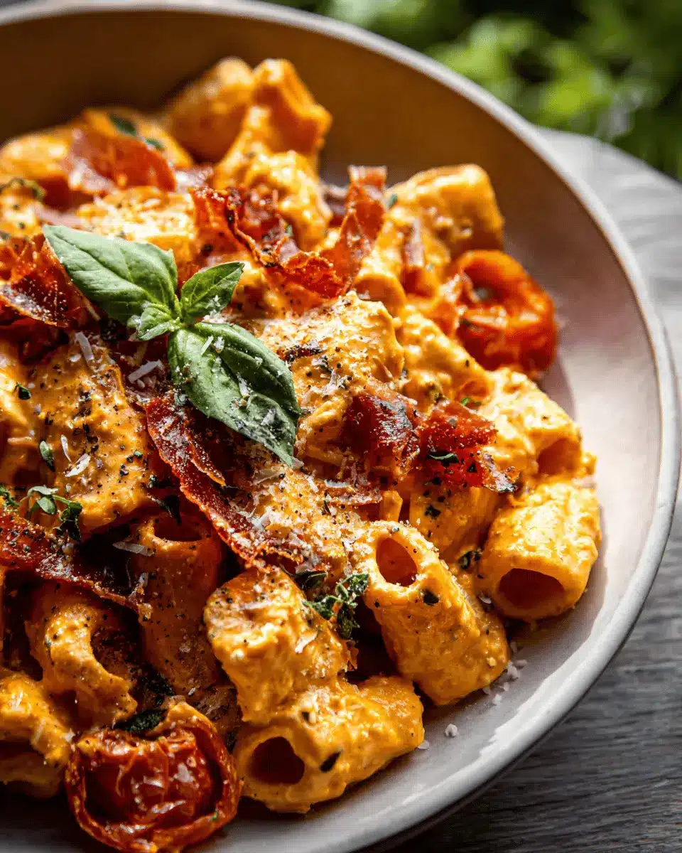 Creamy Roasted Tomato Ricotta Pasta with Crispy Prosciutto