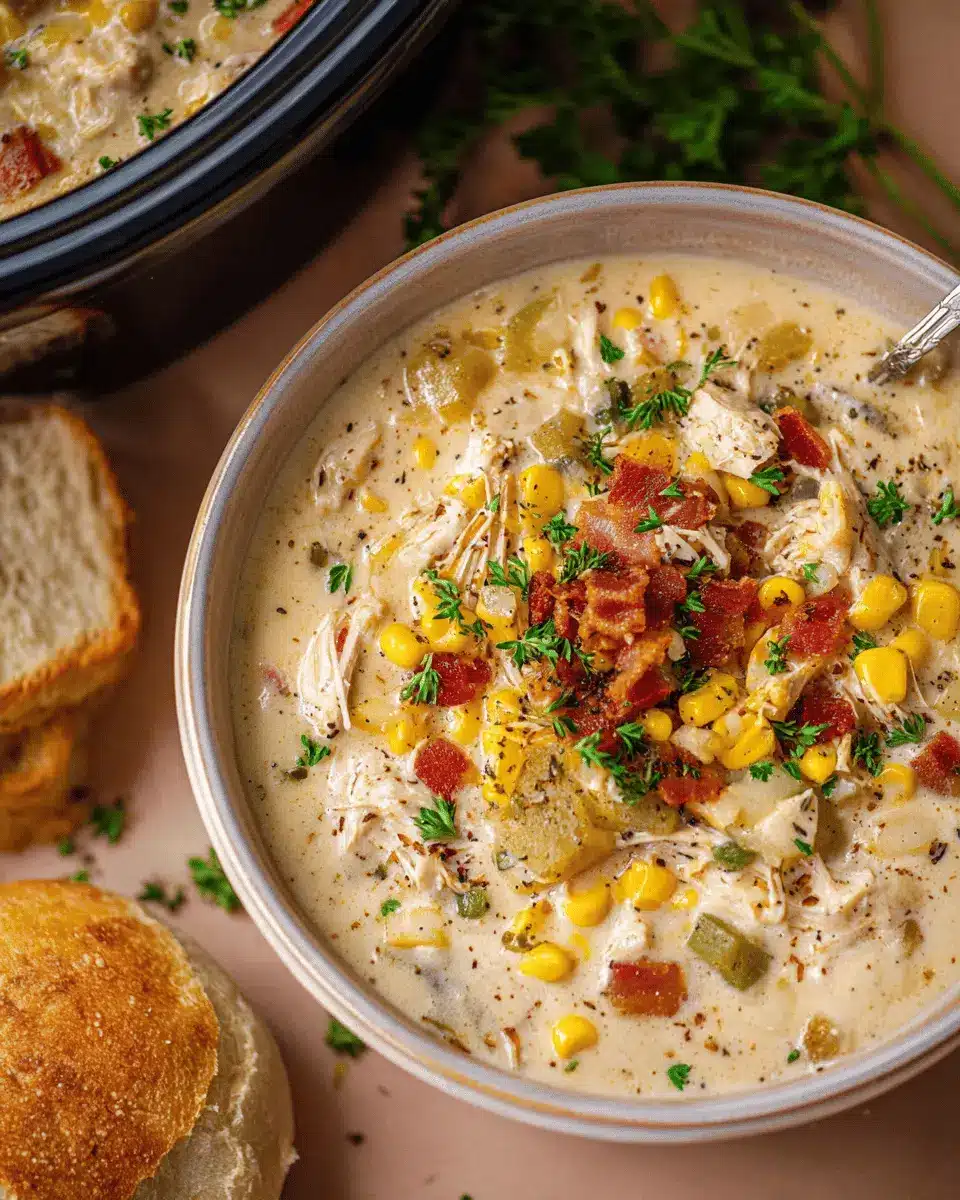 Crockpot Chicken Corn Chowder: Easy Comfort Food with Turkey Bacon