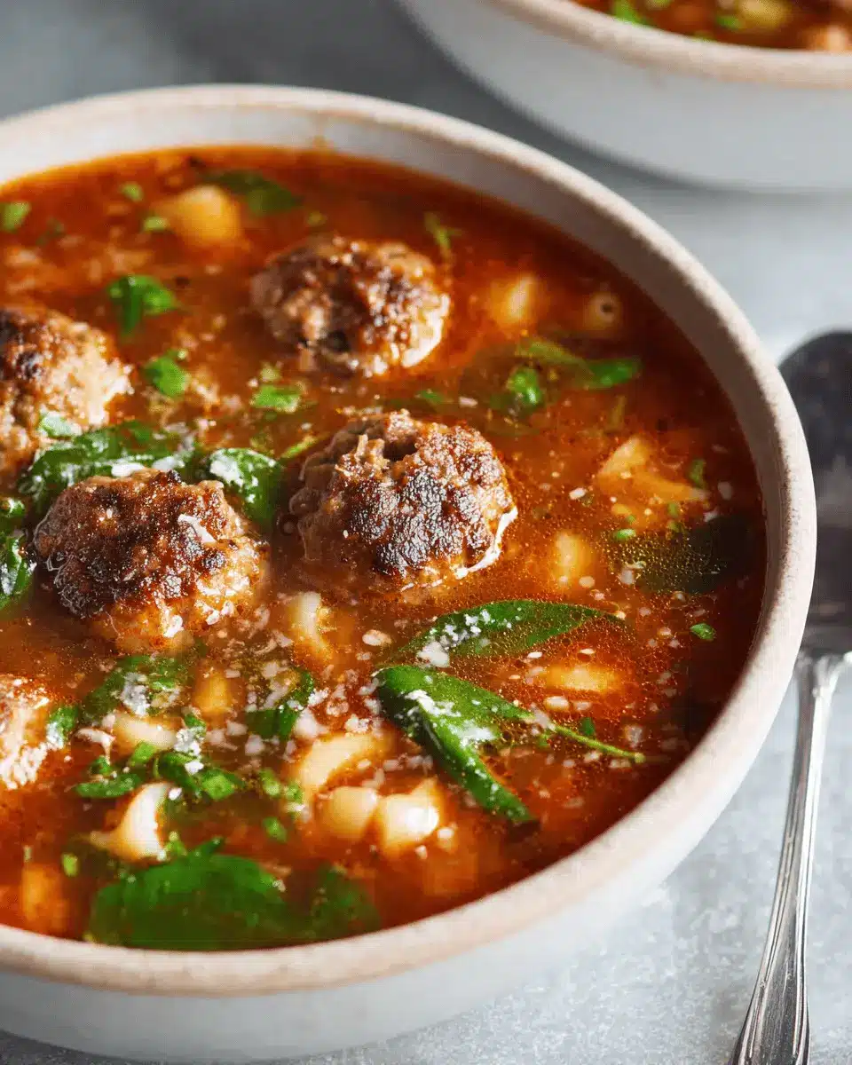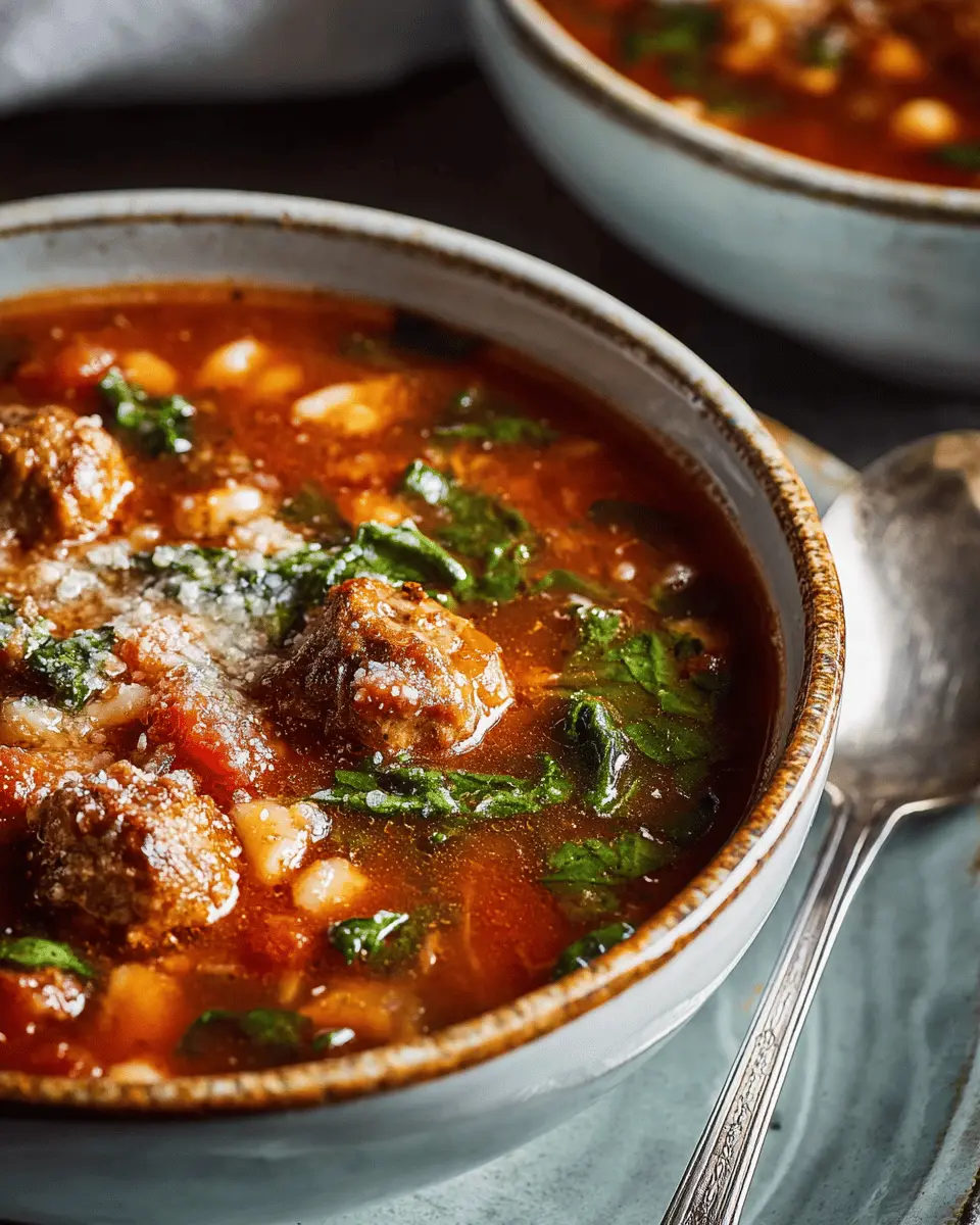 What really sets this soup apart is its robust combination of flavors. Think of juicy Italian sausage meatballs simmering in a rich, savory broth that perfectly complements the tender pasta and vibrant spinach. Each ingredient brings its own charm: the savory sausage injects heartiness, while the spinach adds a refreshing touch. You might find yourself reminiscing about cozy family dinners with every spoonful.