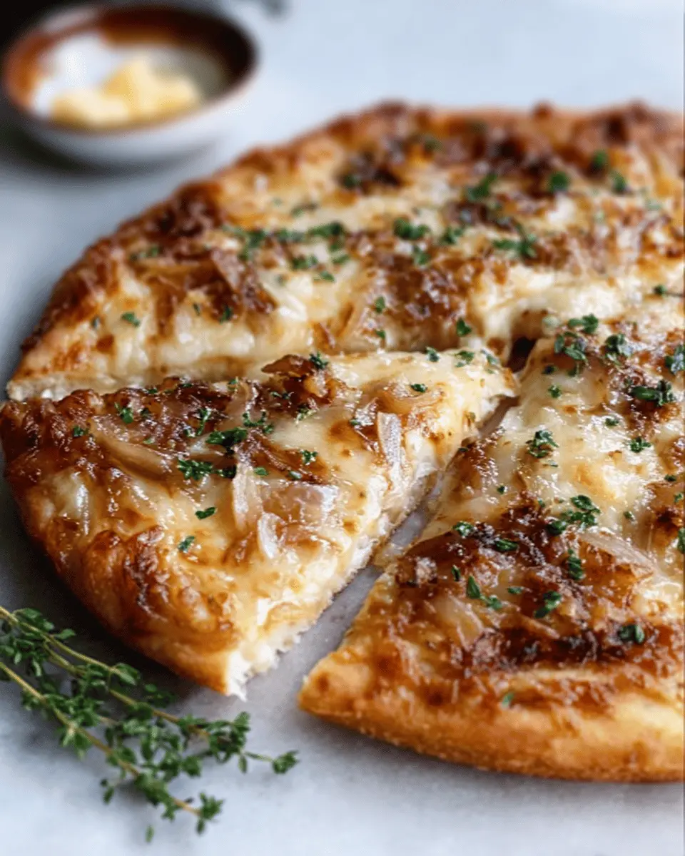 French Onion Soup Pizza: An Easy Indulgence with Turkey Bacon