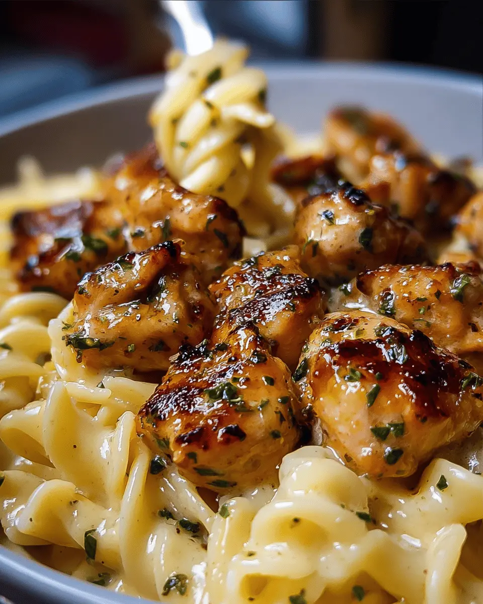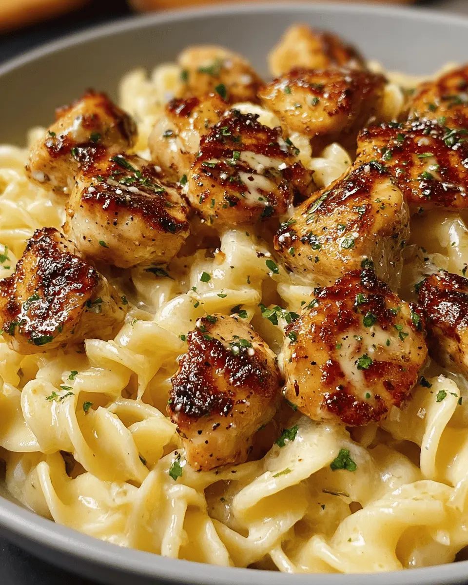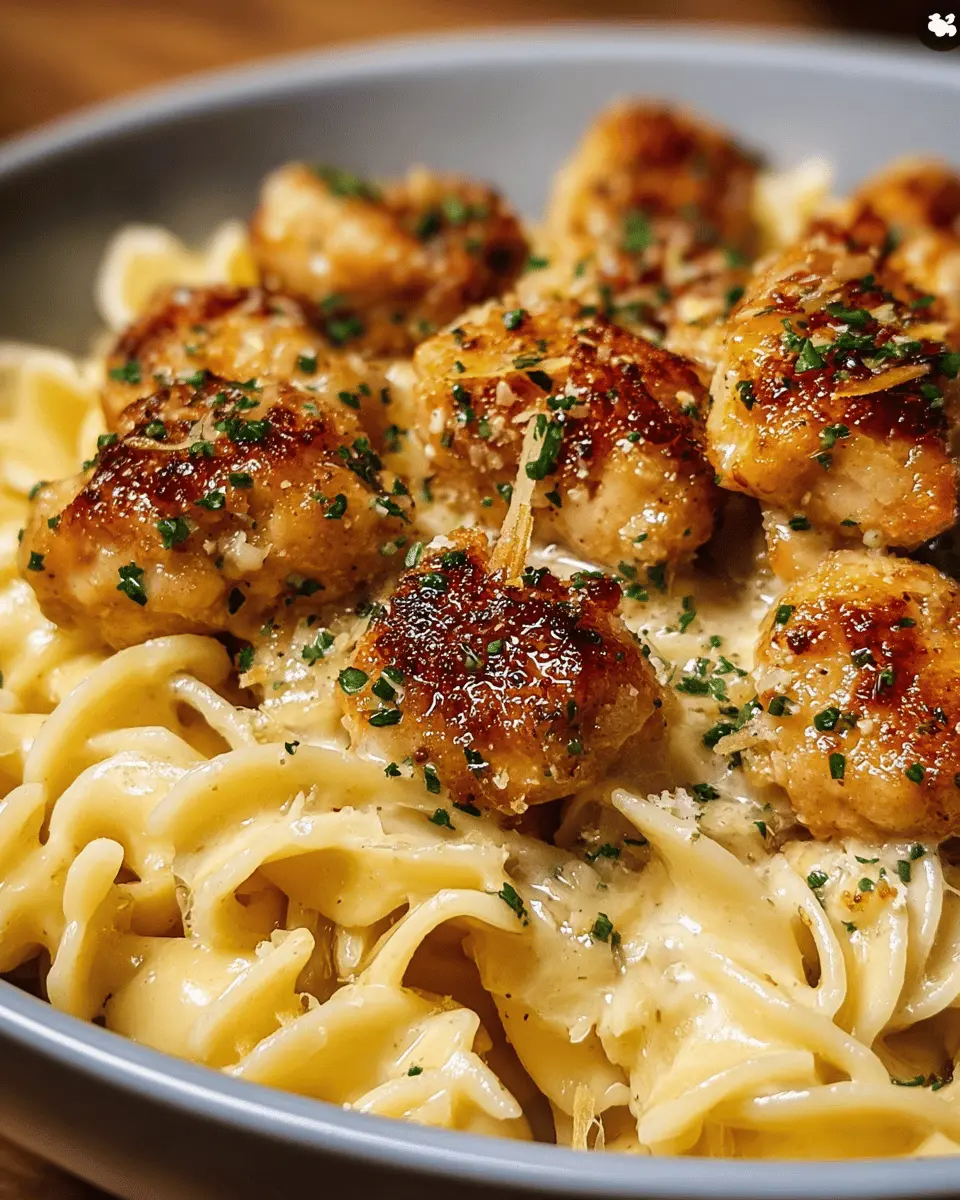 Garlic Butter Chicken Bites: Easy Creamy Parmesan Pasta Delight