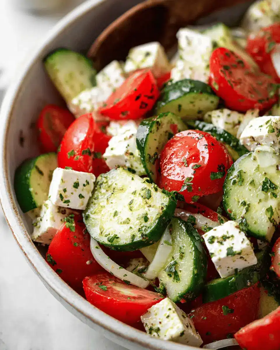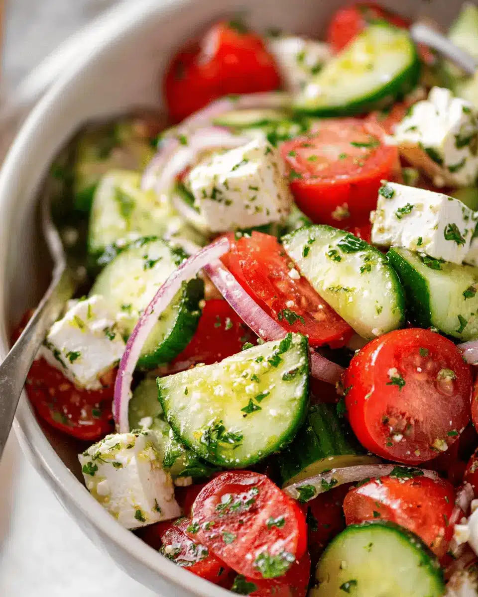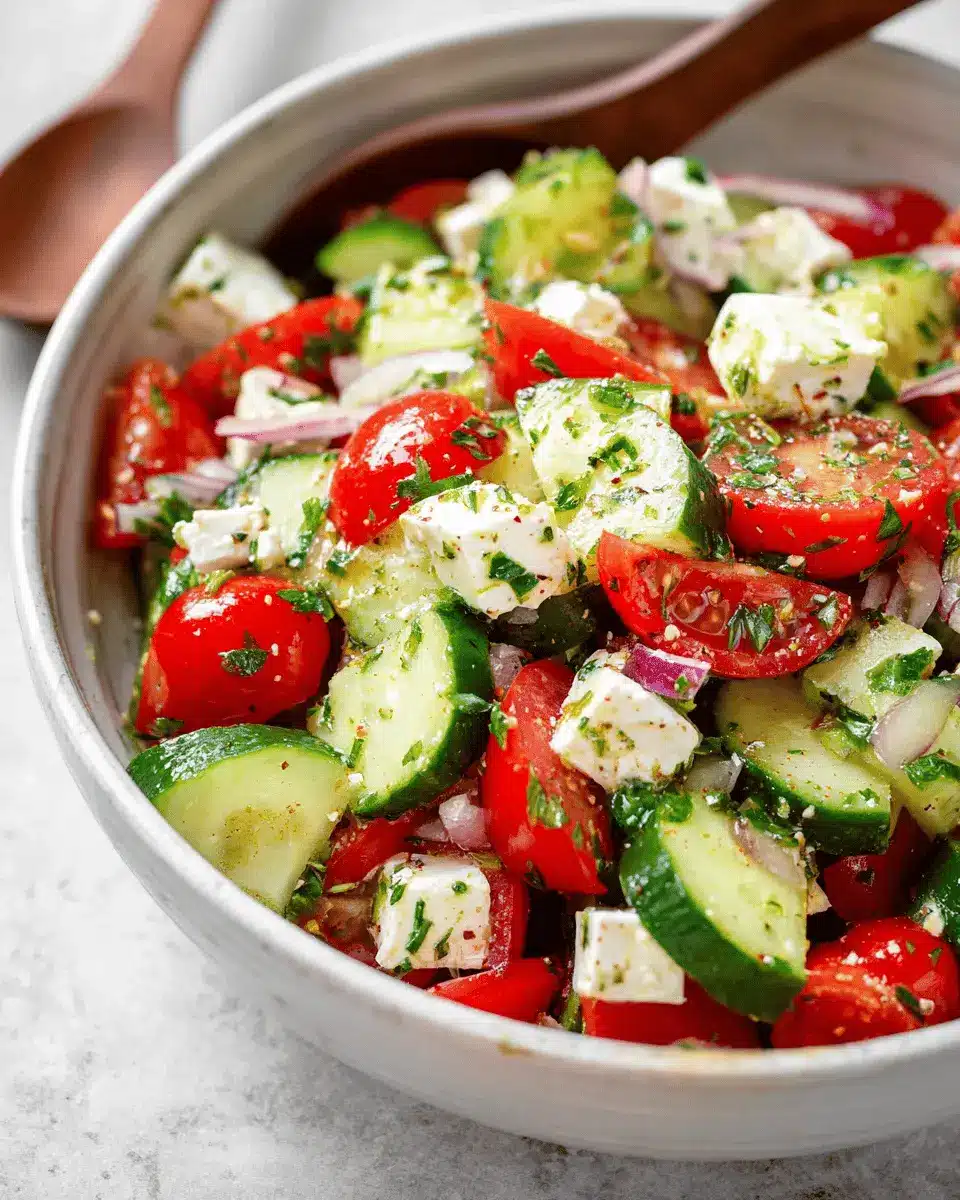 Greek Cucumber Tomato Feta Salad is an absolute must-try for anyone looking to elevate their salad game. This refreshing dish brings together crisp cucumbers, juicy tomatoes, and creamy feta, creating a delightful explosion of flavors in each bite. Perfect for a quick lunch, a side for dinner, or even a meal prep option for busy weekdays, it is both versatile and satisfying.