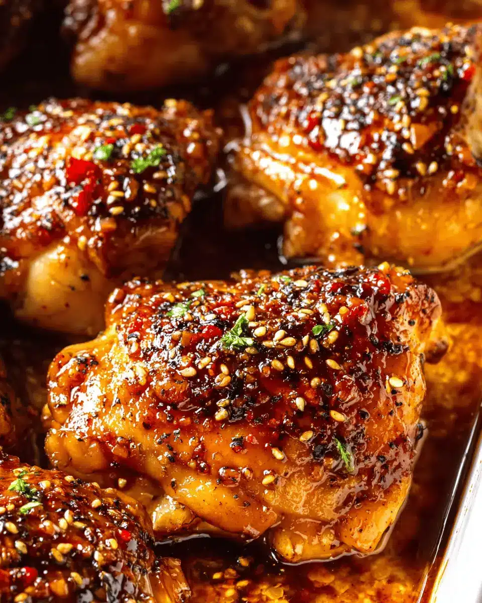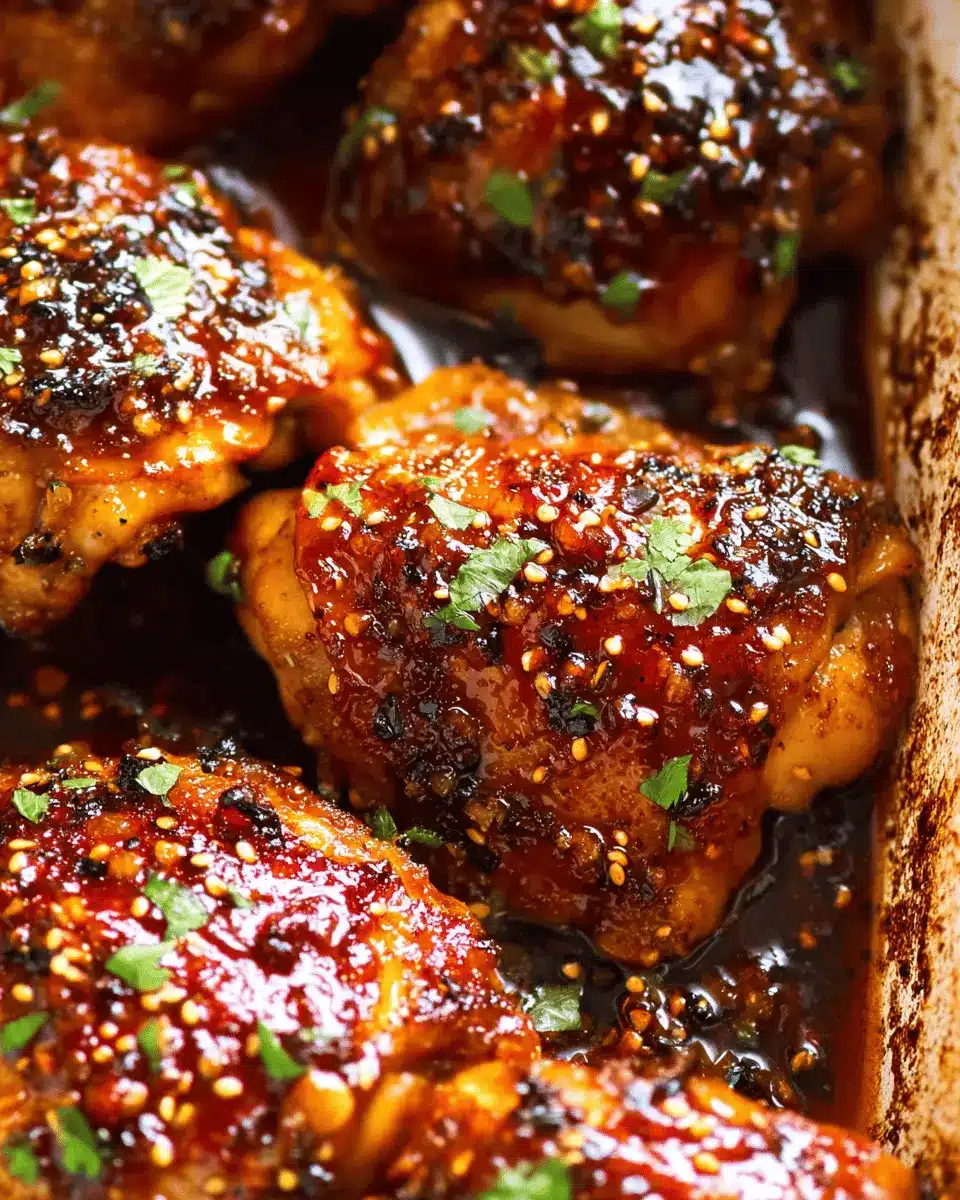 Sure! To keep your honey garlic chicken thighs fresh, store leftovers in an airtight container in the refrigerator for up to 3 days. If you want to extend their shelf life, consider freezing them—just ensure they are cooled completely before transferring them to a freezer-safe bag. When you’re ready to enjoy them again, simply thaw in the refrigerator and reheat on the stove or in the oven.
