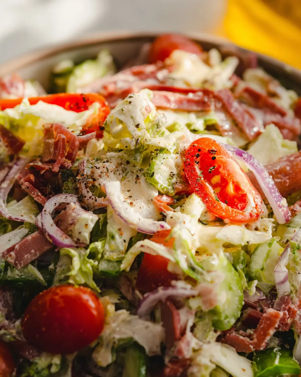 Creating a delicious Italian Grinder Salad is simple, but a few tips can elevate your dish. First, use the freshest ingredients; crunchy iceberg lettuce and ripe grape tomatoes make a real difference. Don't hesitate to customize your proteins—swap in turkey bacon for a lighter option or add diced chicken ham for extra flavor.