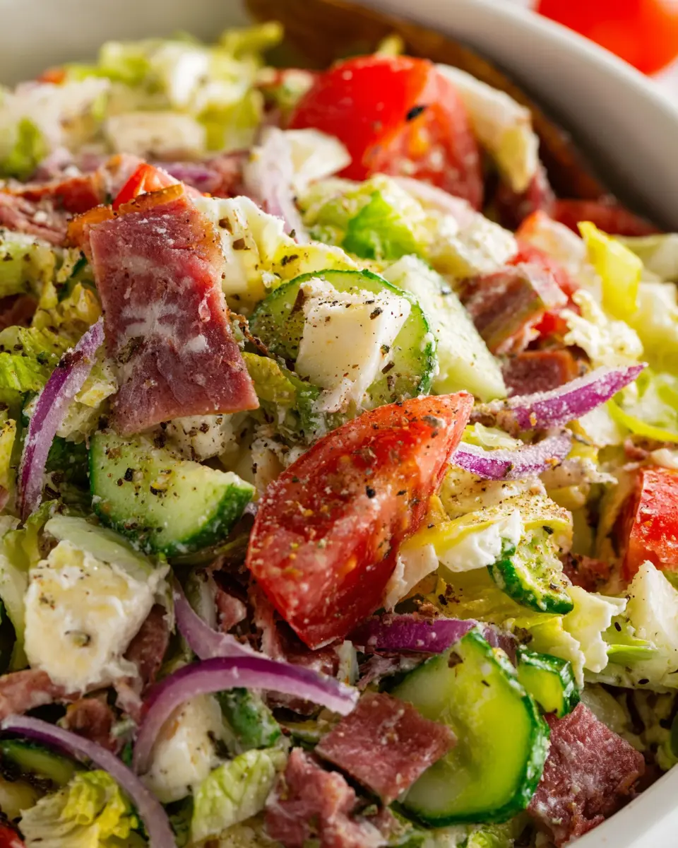 An Italian Grinder Salad is a vibrant mix that brings together fresh vegetables, meats, and cheeses, all tossed in a creamy dressing. It’s a delightful nod to classic Italian subs but presented in a light, healthy salad form. The combination of ingredients, such as crisp iceberg lettuce, spicy banana peppers, and savory salami, creates a flavor explosion that's perfect for lunch or a potluck.