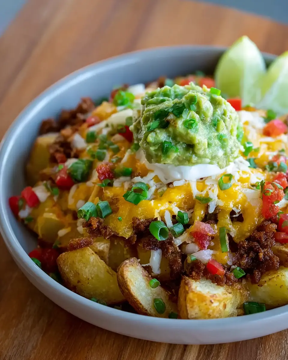 In summary, the loaded potato taco bowl is more than just a meal; it’s a customizable experience for every palate. With crispy potatoes, savory beef, and fresh guacamole and salsa, it brings friends and family together. Enjoy this delicious dish that elevates your taco night!