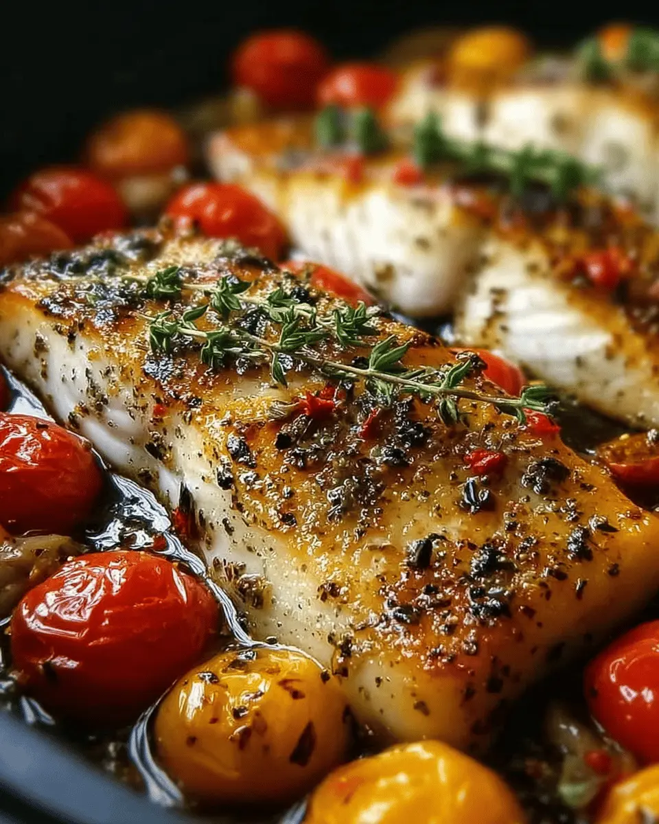 To elevate your Mediterranean Baked Fish even further, scatter halved cherry tomatoes, chopped parsley, and dill over the fillets. Drizzle with freshly squeezed lemon juice and sprinkle some zest on top. Citrus really brightens the entire dish!