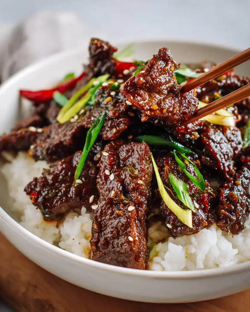 Moreover, this dish is highly customizable. If you enjoy a bit of spice, add some dried red chili peppers for a kick. For those looking to incorporate more vegetables, bell peppers or broccoli make excellent additions. With a relatively short cooking time and high satisfaction level, Mongolian beef is perfect for busy weeknights or impressing guests at dinner parties.