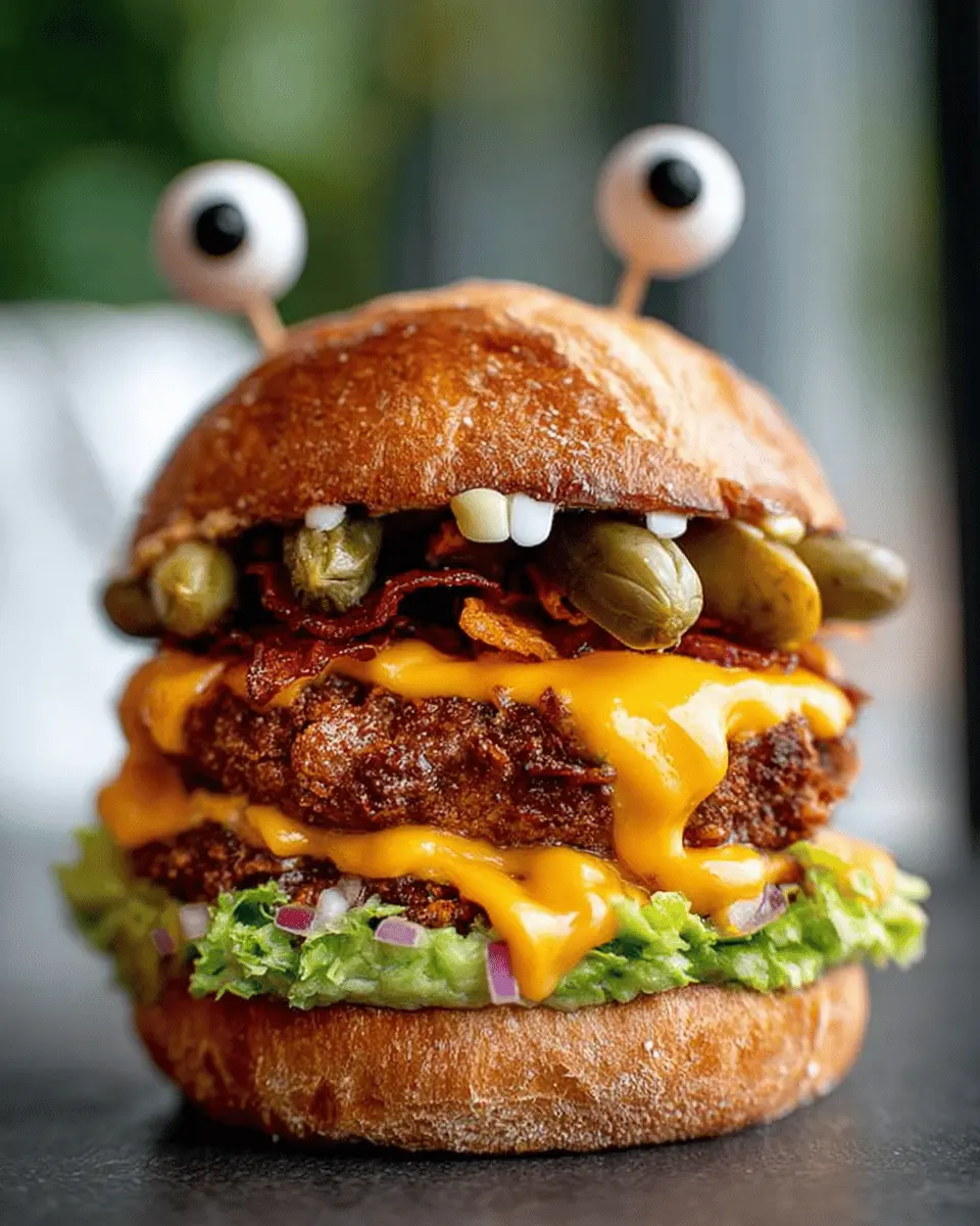 Looking for a lighter version of these delicious monster burgers? Consider swapping regular cheddar for reduced-fat cheese, or using turkey or chicken patties instead of beef. You can also add more veggies like lettuce and spinach to boost fiber and nutrition—try avocados, or even a touch of Greek yogurt as a sauce alternative!