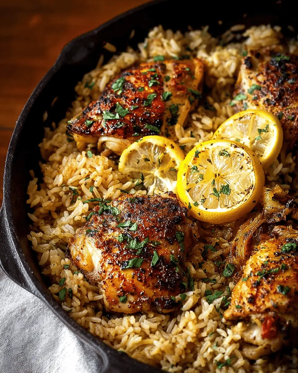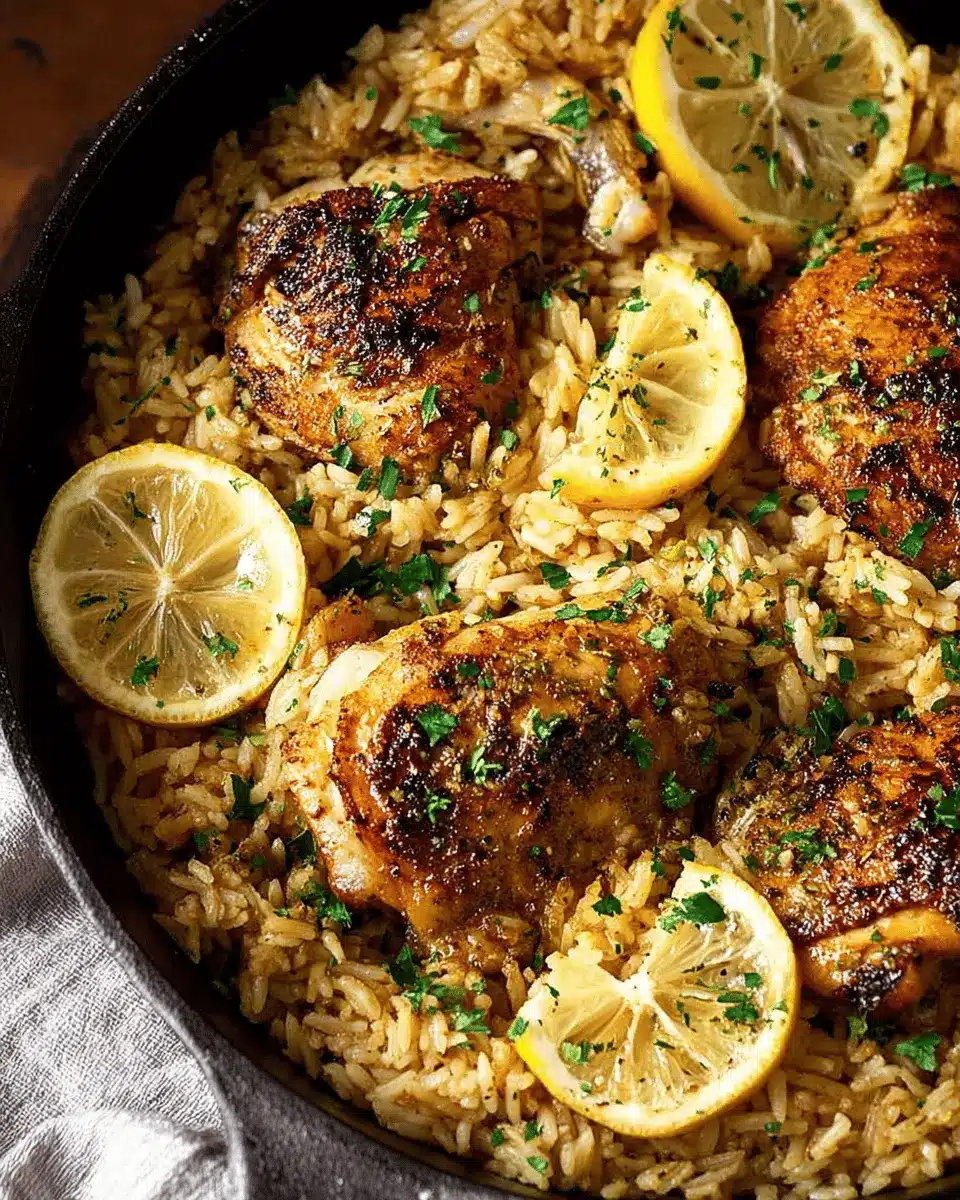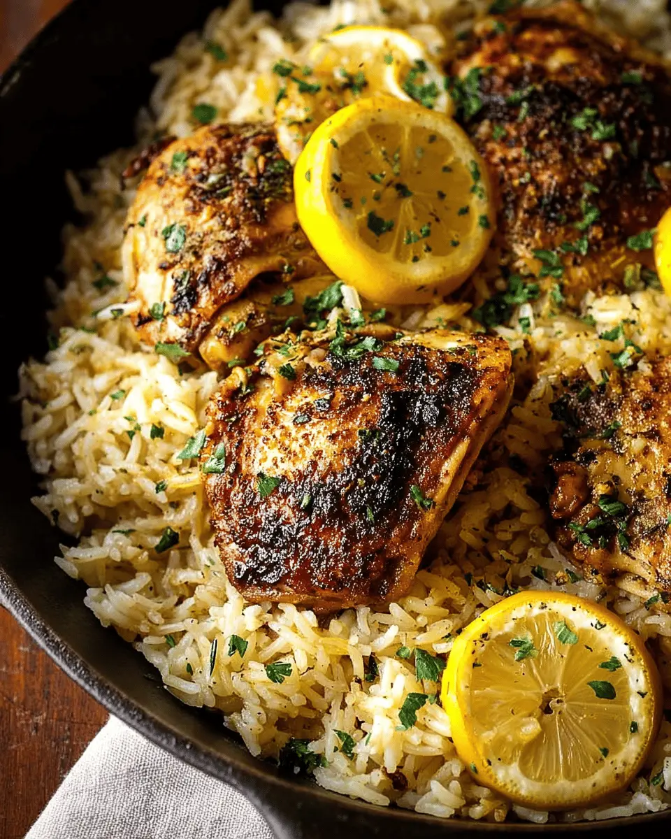In this recipe, succulent chicken thighs marinated in zesty lemon and oregano sit atop fragrant rice simmered with chicken broth, herbs, and garlic—a wonderful blend of Mediterranean flavors. Not only is it easy to prepare, but it's also a fantastic meal prep option that makes delicious leftovers. Trust me, this dish will quickly become a staple in your weeknight rotation. Ready to give it a try?