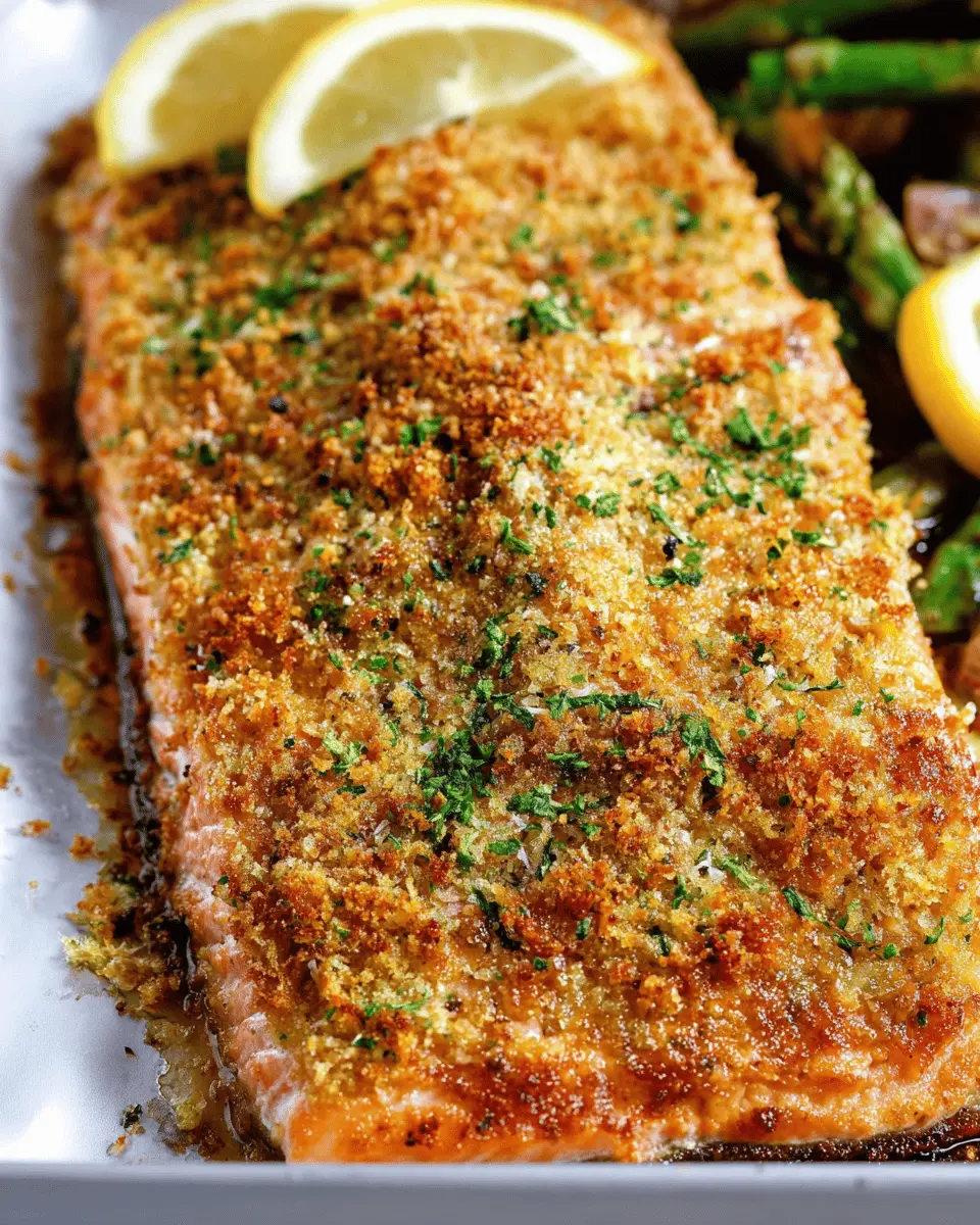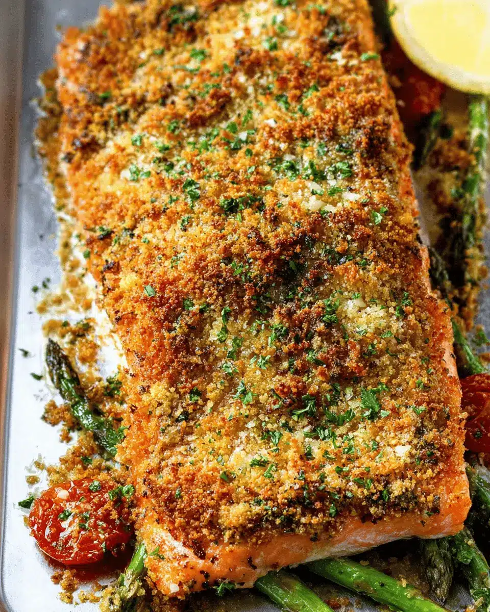 Absolutely! You can prepare the breadcrumb and parmesan mixture and even coat your salmon fillet ahead of time. Just store it in the refrigerator for a few hours or overnight. When you’re ready to enjoy, simply pop it in the oven. This makes it a perfect option for busy weeknights or special occasions!