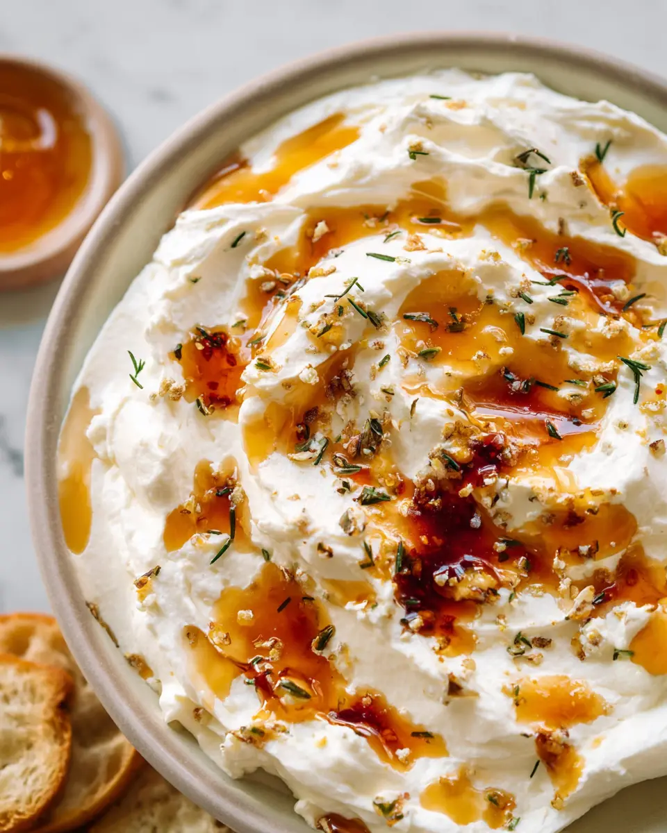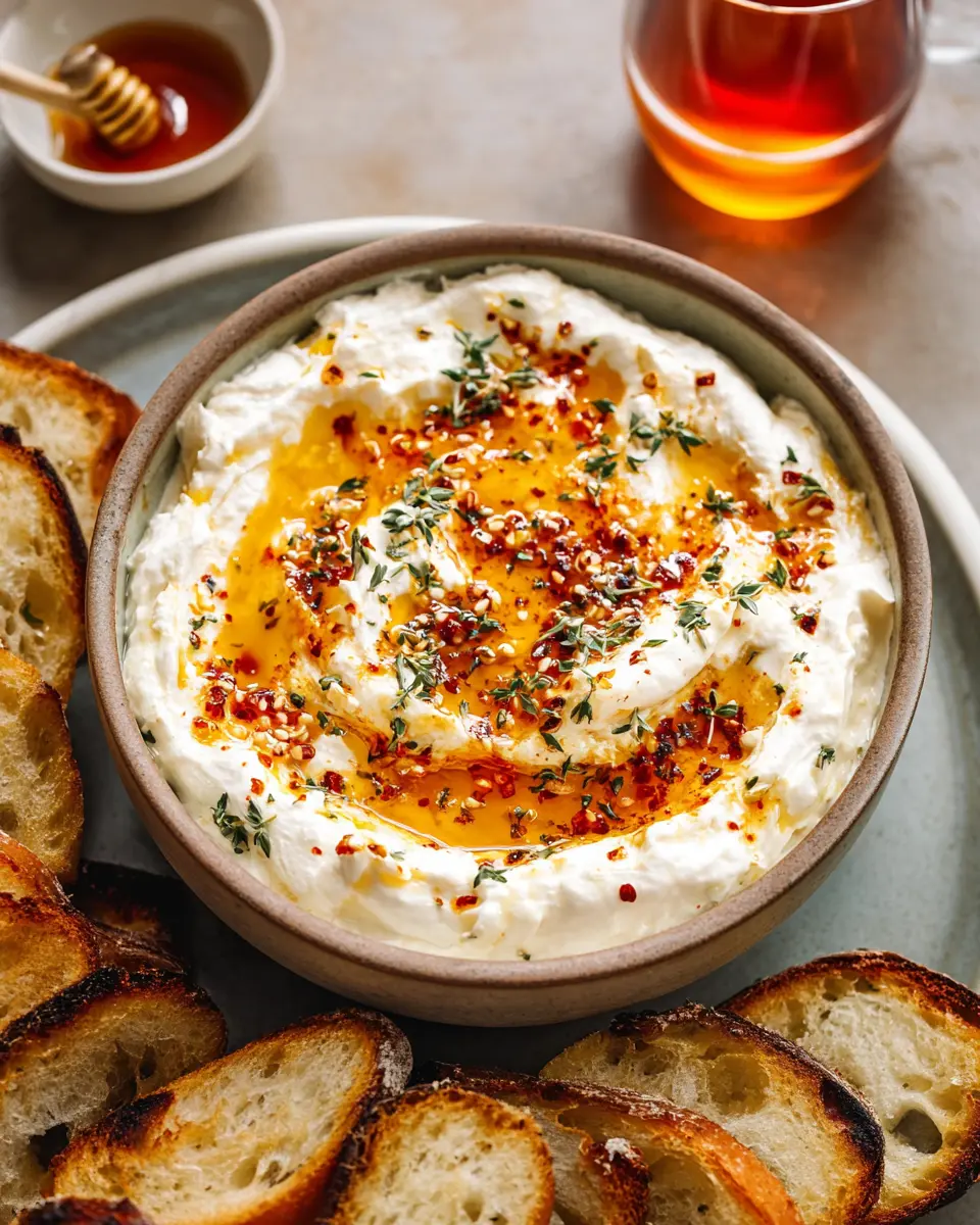 Quick Whipped Ricotta Dip with Hot Honey Appetizer