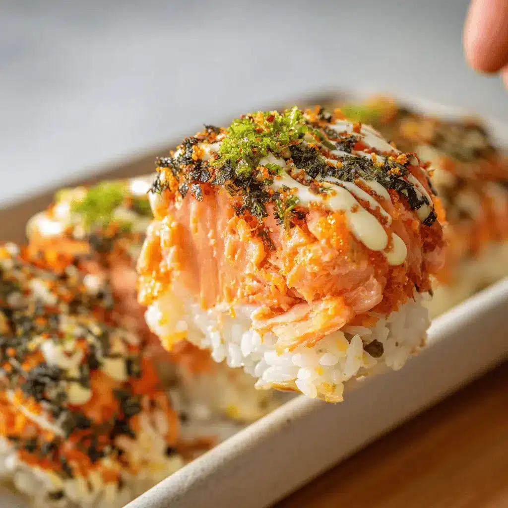 Feel free to personalize your salmon sushi bake by experimenting with different toppings. Try incorporating avocado for a creamy texture or add finely chopped jalapeños for a kick! You could also swap in your favorite seafood like shrimp or even a vegetarian alternative, such as tofu. Don't hesitate to adjust the level of Sriracha mayo to match your taste—more for spice, less for subtlety!
