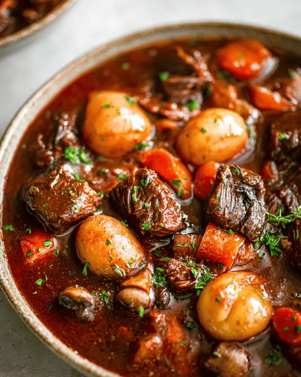In closing, this secret ingredient beef bourguignon elevates a classic dish into a sumptuous meal that’s perfect for any occasion. The blend of flavors from fresh herbs, rich stock, and perfectly cooked vegetables creates a recipe to wow your guests. Try it, and you’ll appreciate the depth of flavor it brings!