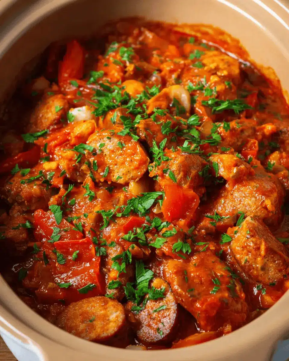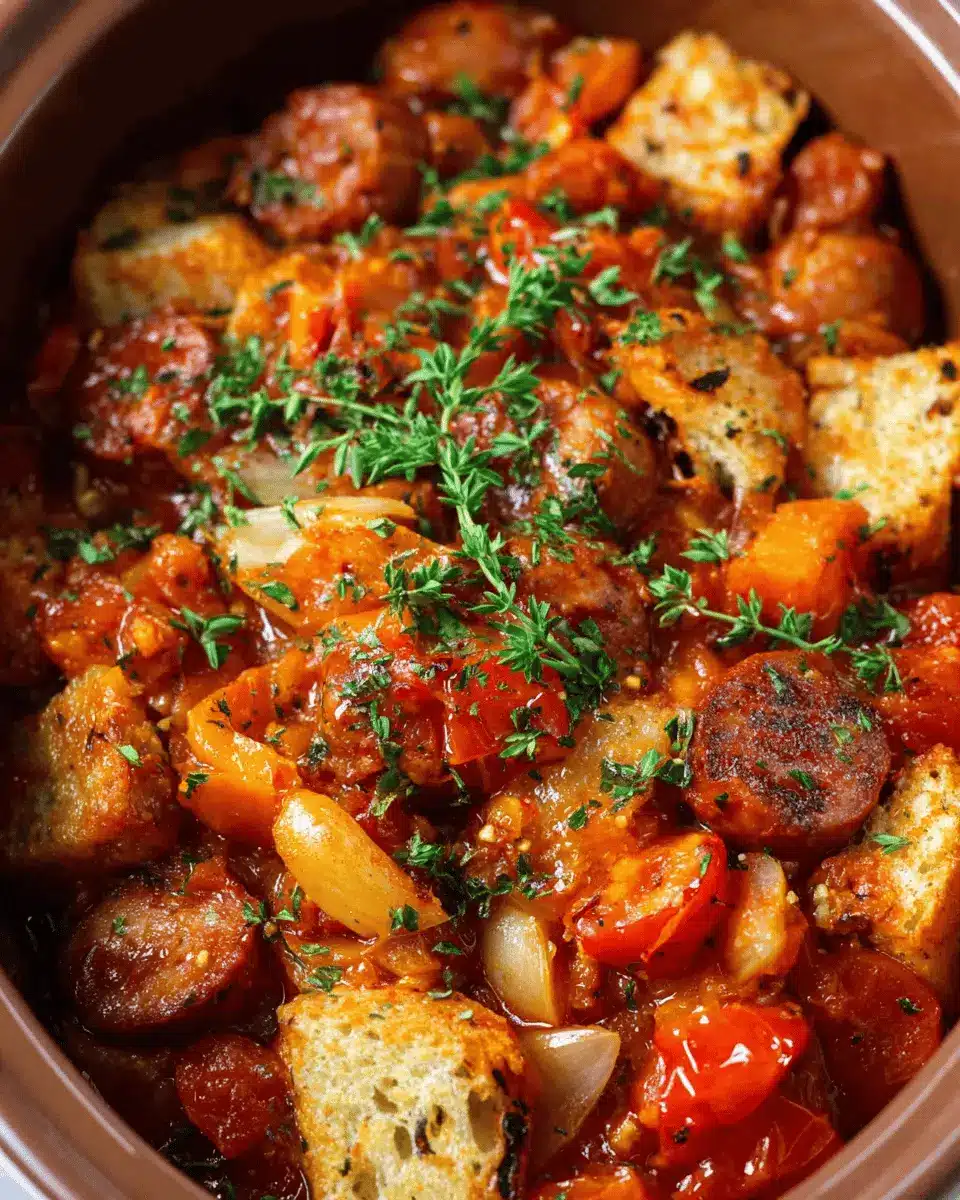 If you’re looking for a lighter take, try a vegetarian alternative! Substitute the sausages with plant-based options, like lentils or mushrooms, which will absorb the flavors while providing plenty of protein. You can use about 200g of cooked lentils or a mix of 250g of diced mushrooms and zucchini. This twist not only makes the dish lighter but also caters to those following a vegetarian lifestyle without compromising on taste. For added inspiration on healthy cooking, visit EatingWell.