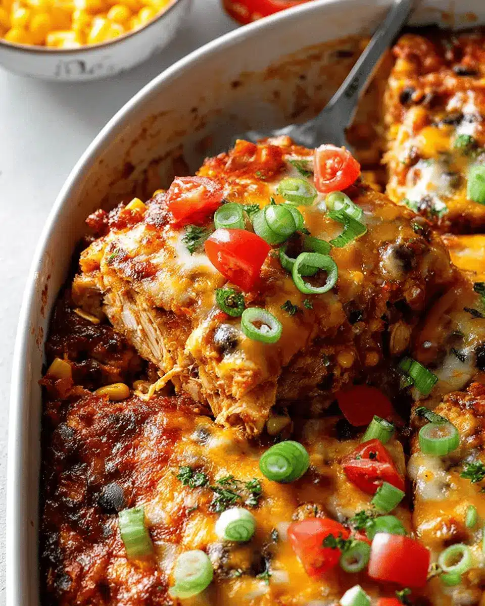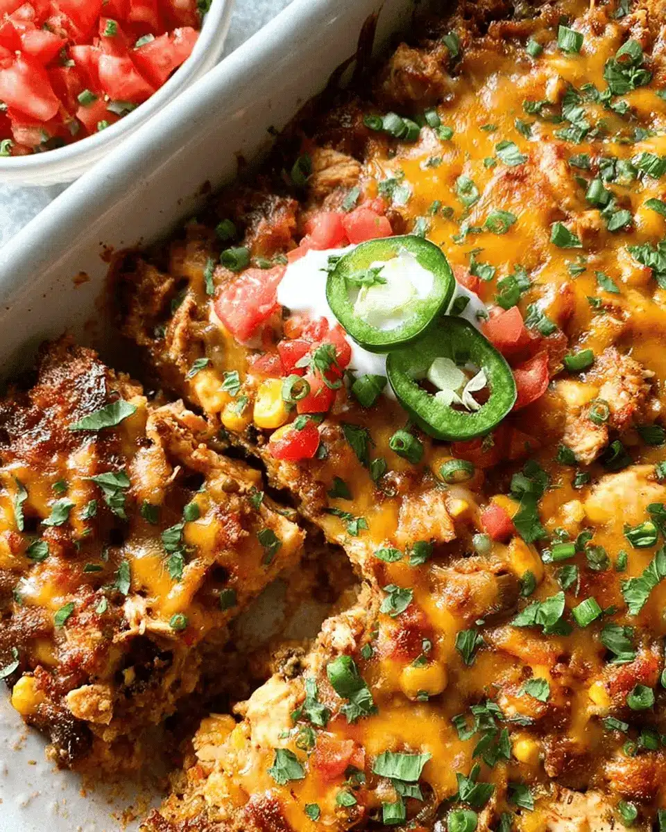 Elevate your Southwestern Chicken Casserole by adding some delicious toppings. Try adding shredded Colby Jack cheese for extra creaminess, or a dollop of Greek yogurt for a tangy twist. Fresh salsa and sliced green onions not only add vibrant color but also a burst of freshness that complements the casserole beautifully. Don’t hesitate to sprinkle some sliced jalapeños if you crave a little heat!