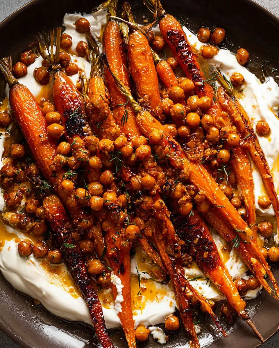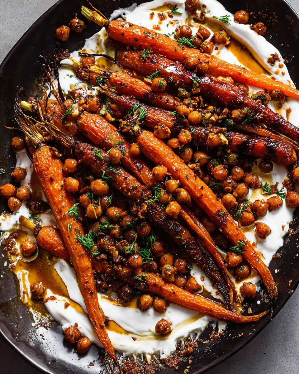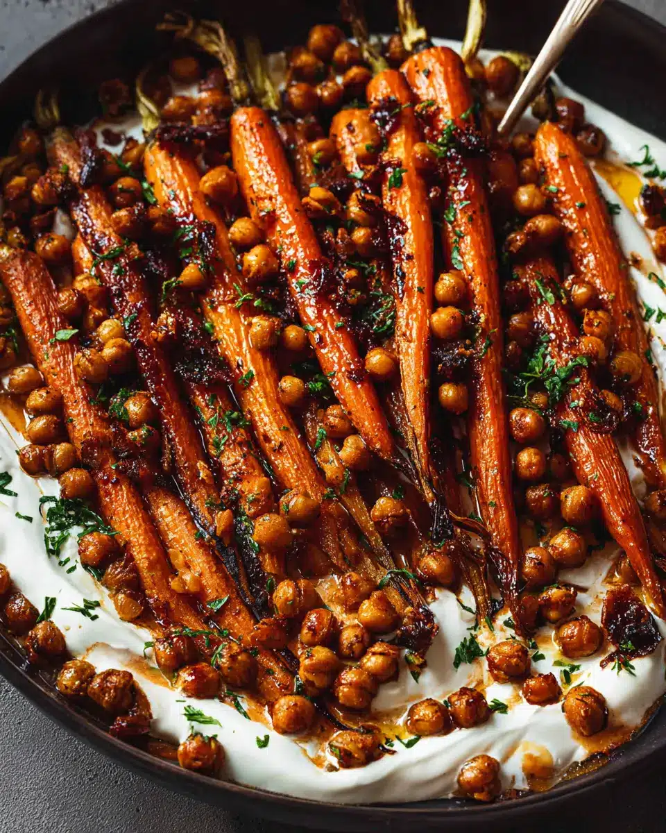Spicy maple roast carrots with crispy chickpeas and yogurt sauce