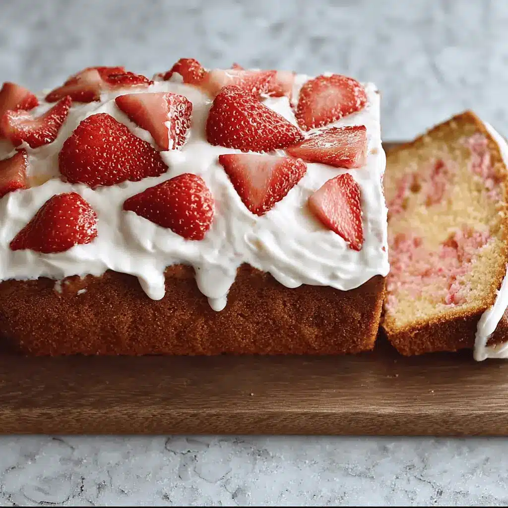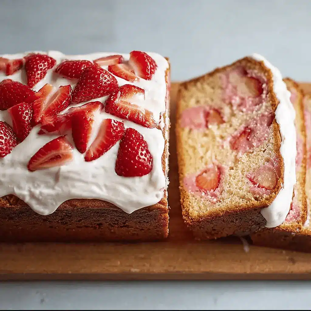 Elevate your strawberries and cream loaf cake with a few simple garnishes. Top each slice with a dollop of whipped cream and a sprinkle of fresh sliced strawberries. You might also consider drizzling a homemade strawberry glaze for an extra burst of flavor. For added texture and visual appeal, try supporting the cake with a side of crushed or whole berries – an eye-catching presentation that tantalizes the taste buds.