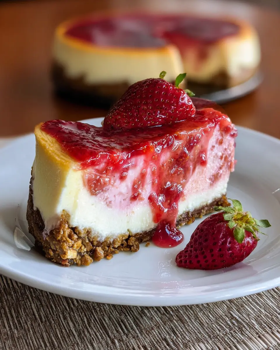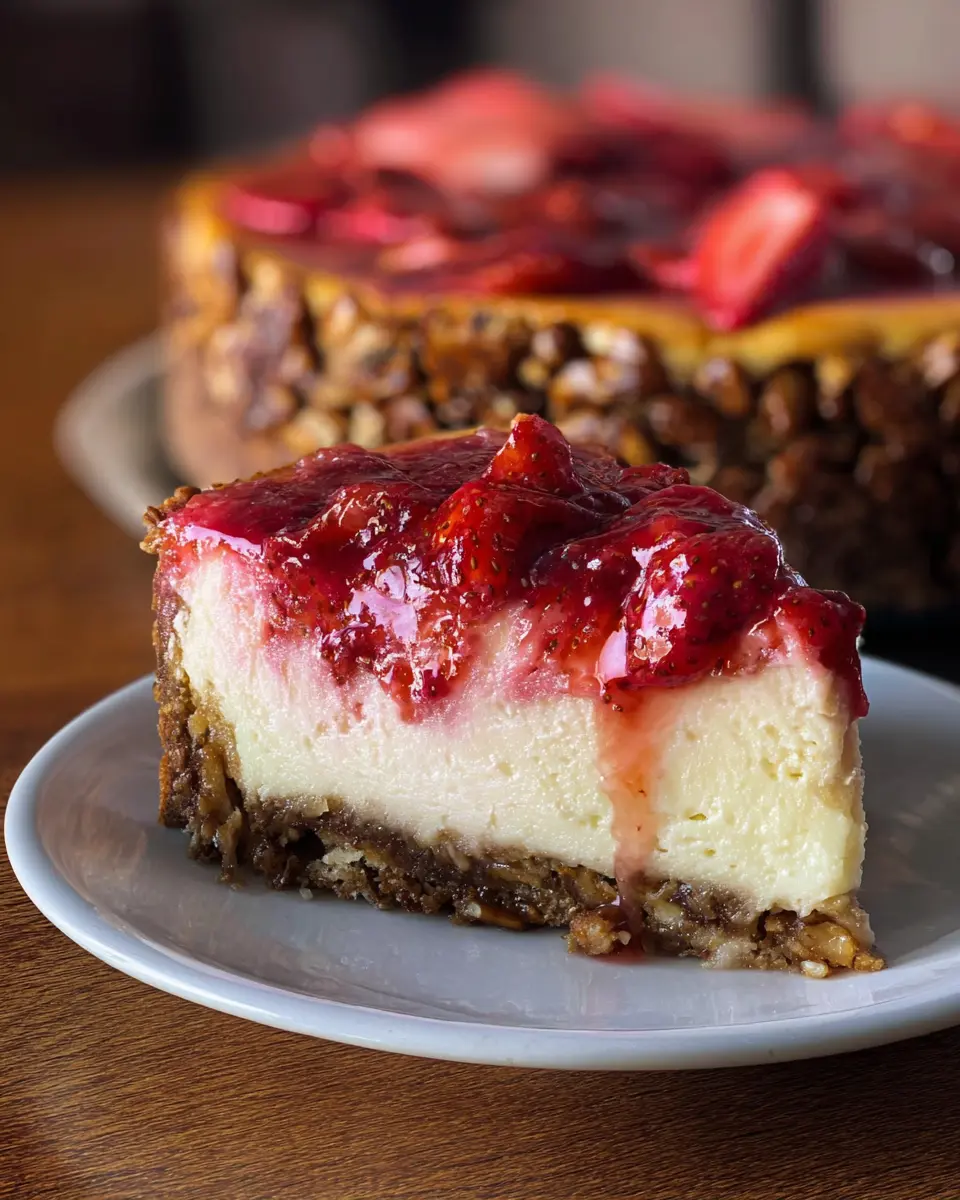 In summary, strawberry cheesecake with a pretzel crust offers a delightful blend of flavors and textures that is sure to impress your guests. Its sweet, creamy filling paired with the salty crunch of the pretzel crust creates an irresistible dessert. Enjoy making it, and savor every bite!
