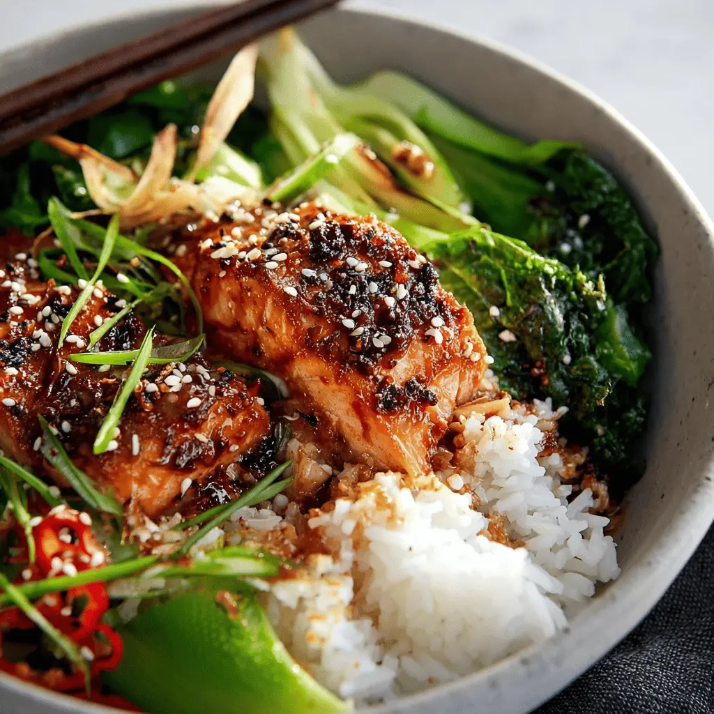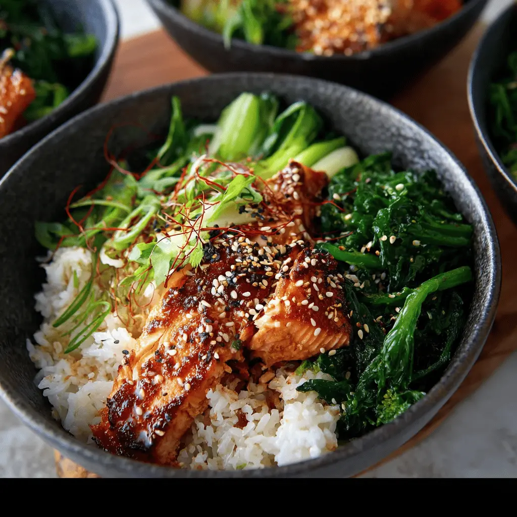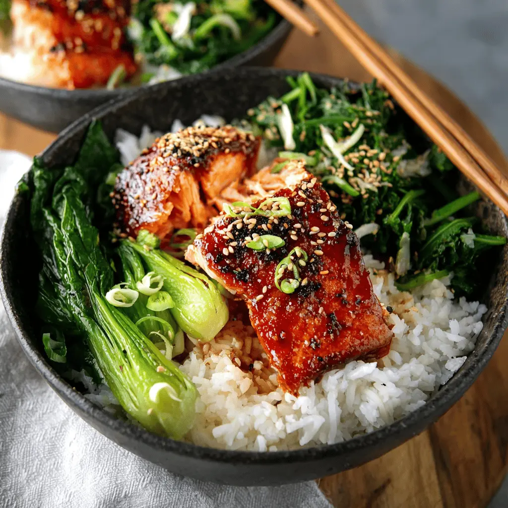 Teriyaki Salmon Bowls with Ginger Sesame Greens & Coconut Rice