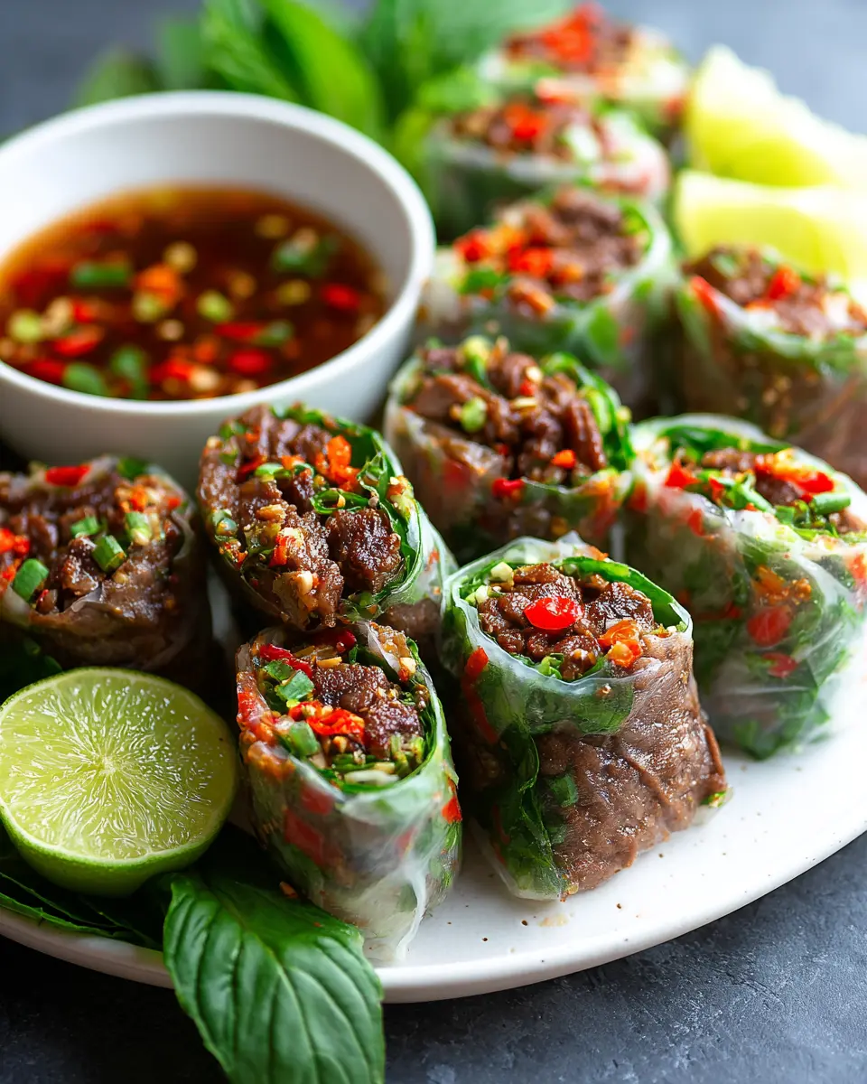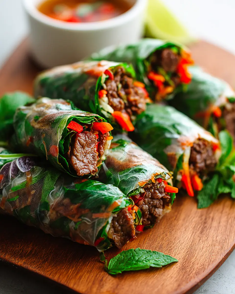 Have you ever tried wrapping fresh ingredients in rice paper? It’s an art form, one that combines crunch and flavor in each bite. The combination of ground beef seasoned with garlic, soy sauce, and chili flakes brings warmth, while the Thai basil and fresh veggies add a bright finish. Plus, these rolls are perfect for dipping in a sweet chili sauce or tangy fish sauce for an extra burst of flavor.