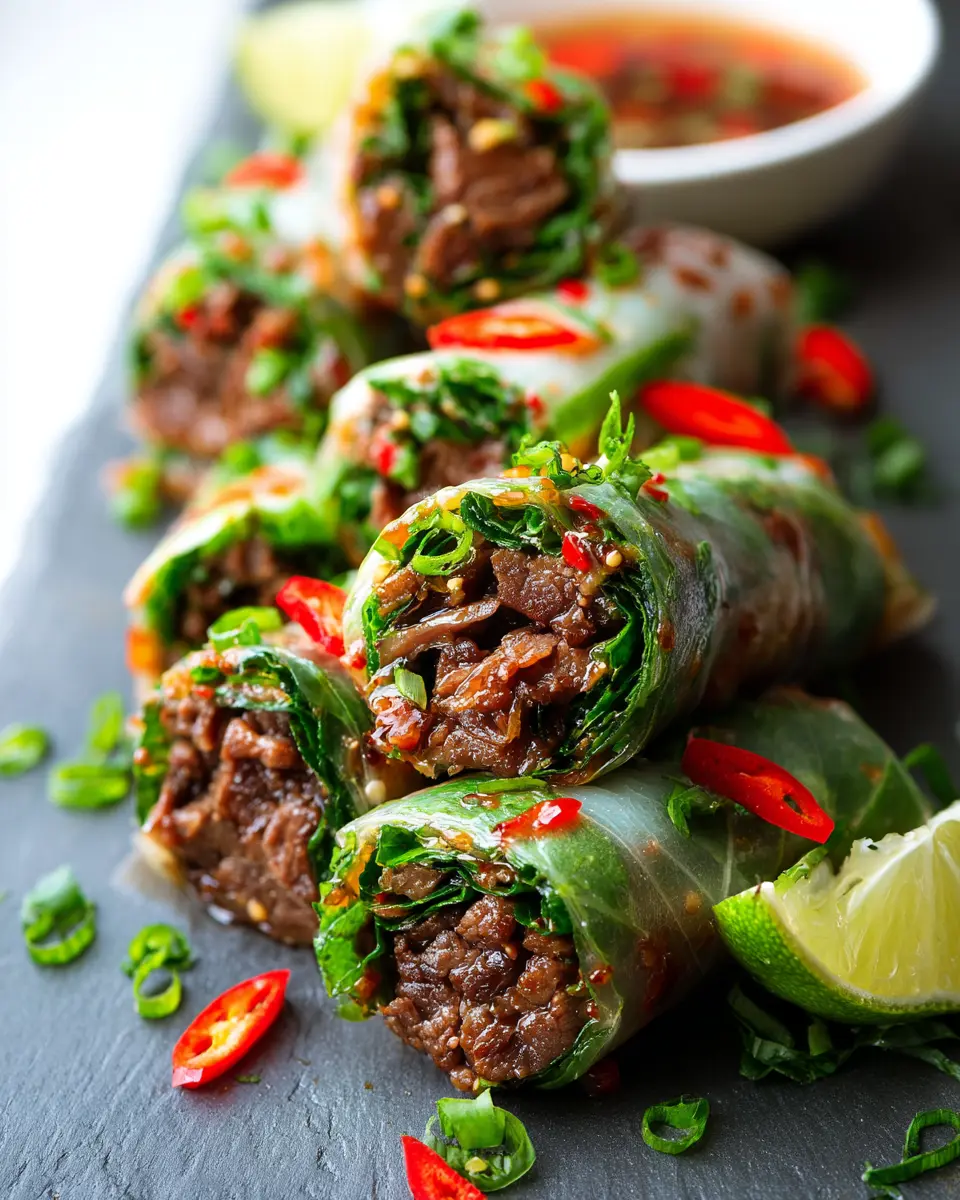 In total, you’re looking at about 30 minutes from start to finish. Perfect for a weeknight dinner or a fun appetizer for your next gathering. The quick preparation means you’ll have more time to enjoy your Thai Basil Beef Rolls with friends and family, so let’s dig in!