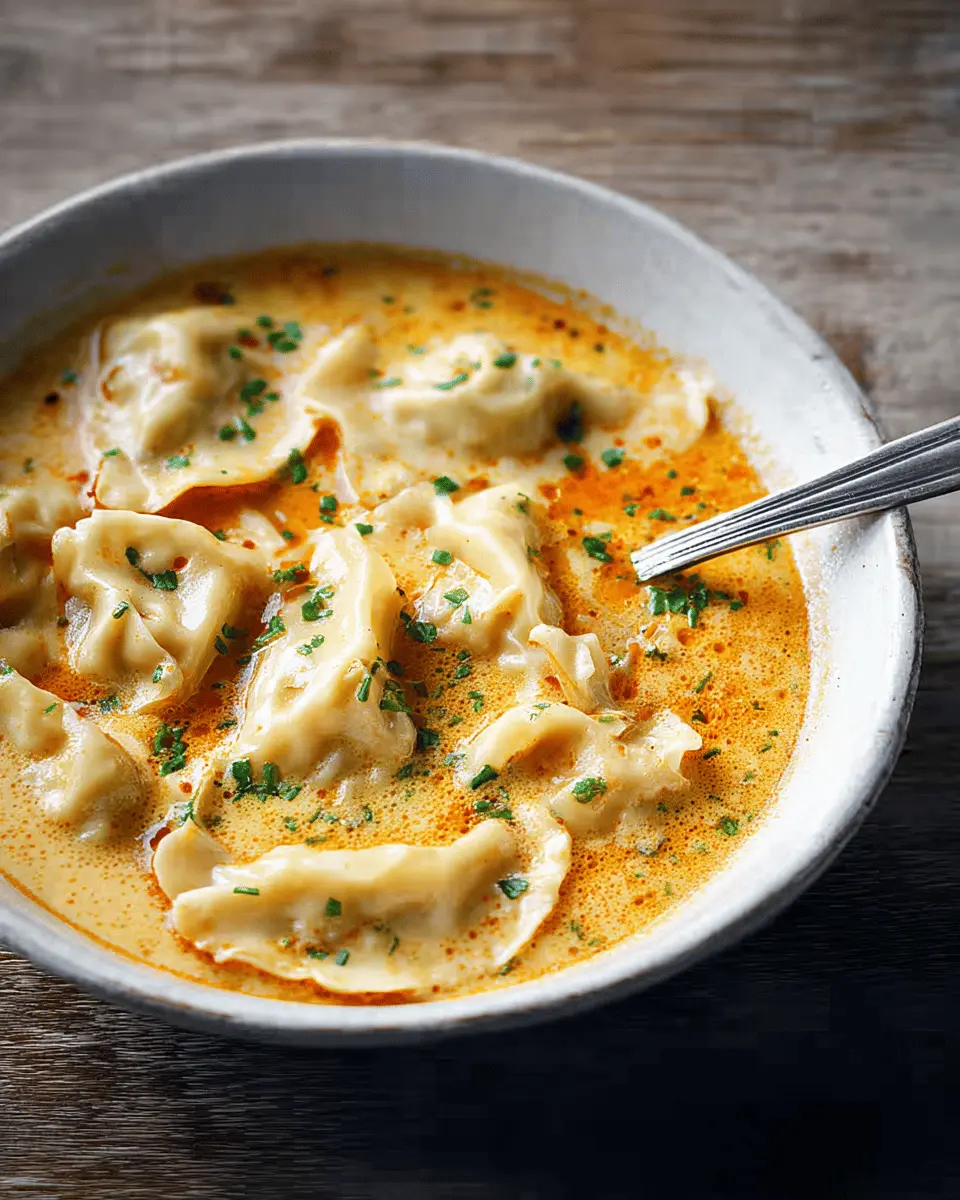 Finally, it’s time to serve your Thai Coconut Curry Dumpling Soup! Ladle the soup into bowls, ensuring each has a generous helping of gyozas and curry broth. For a pop of freshness, sprinkle chopped chives on top, or toss in your favorite vegetables to elevate the nutrition factor. Now grab a spoon, and dig into that steaming bowl of comfort. Your taste buds will thank you! Enjoy every last sip. For more delicious inspirations, consider visiting BBC Good Food.