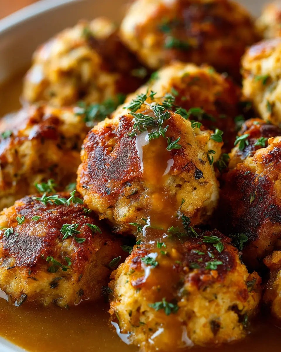 Don’t skimp on herbs! Fresh parsley, sage, and thyme can elevate the flavors significantly. If the mixture feels too dry, gradually add more broth until it holds together nicely. Lastly, if you want that perfect crunchy exterior, leave space between the balls on the baking sheet for better air circulation while baking. Happy cooking!