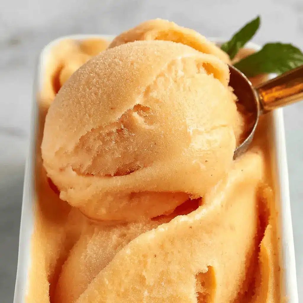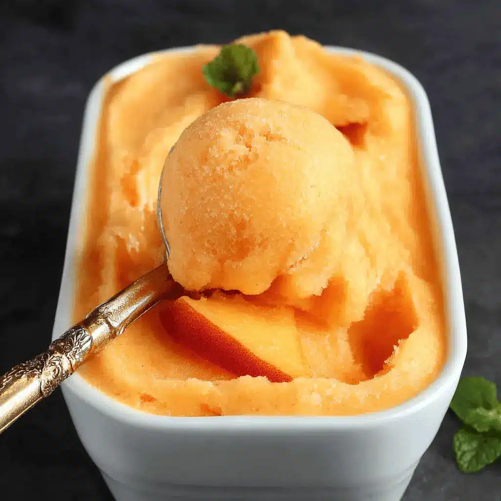Get creative with presentation! Serve your peach sorbet in chilled martini glasses or hollowed-out peach halves for an eye-catching display. Sprinkle with fresh mint leaves for a pop of color and freshness. For a fun twist, top it off with chopped nuts like pistachios or almonds, adding texture to each scoop. You can even blend the sorbet into smoothies with a splash of orange juice for a refreshing drink on hot days. These playful serving ideas are sure to impress and turn your sorbet into a stunning centerpiece!