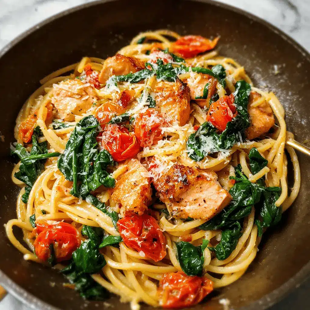 So if you're ready to impress your friends or enjoy a cozy night in, grab your apron and let’s dive into this delightful Tomato Spinach Salmon Pasta recipe!